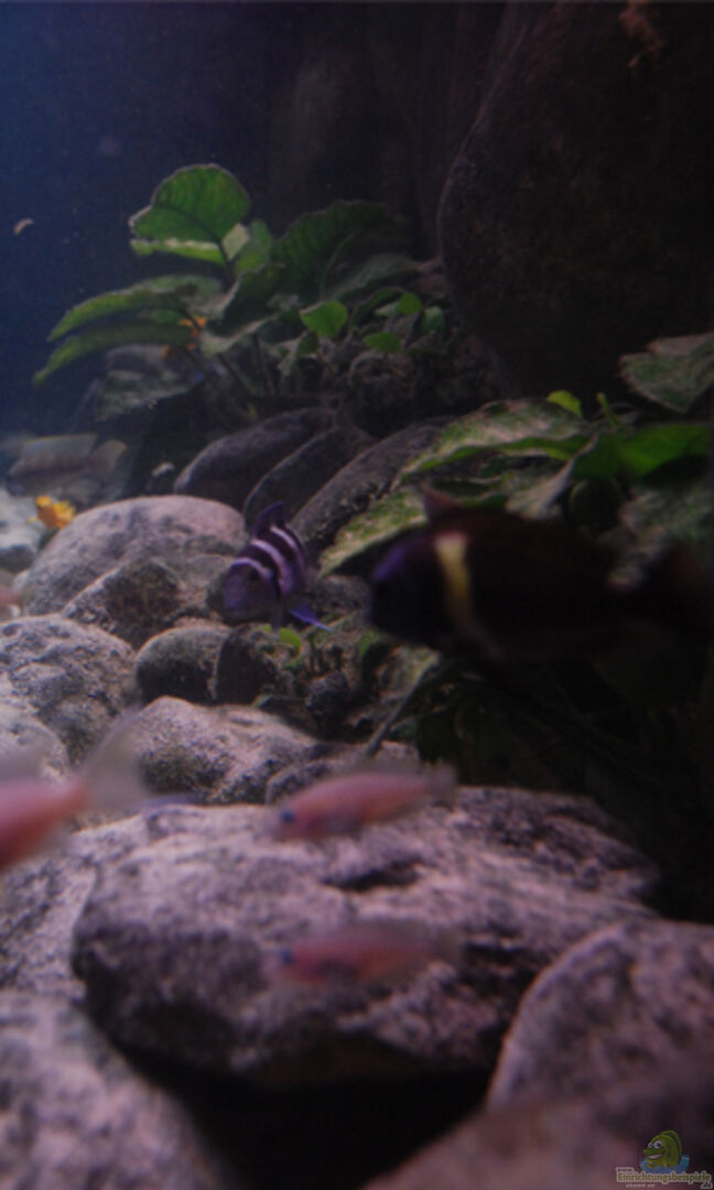 optisch wirklich ein gelungenes Becken, fer Besatz ist gelinde gesagt nicht gelungen.Der einzelne Frontosa, auch als Asylant; passt hier überhapt nicht dazu, man sollte wenn dann schon diese in der Gruppe, mit einem Weibchenüberschuss halten, Die schnelle Schwimmweise der 2 Tropheusarten stört den Frontosa, ist viel zu hektisch. Tropheus sollten in Gruppen von mindestens 15 Tieren miteinander vergesellschaftet werden.