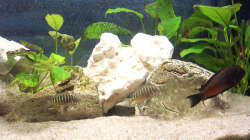 schöne Tiere hast du da. Ist aber auch das Maximum für die Beckengrö?e. Ich würde vielleicht das Lochgestein anders verteilen, ist aber Geschmackssache. Die Temperatur ist mit 28C etwas zu hoch, 25-26 langen voll und ganz.