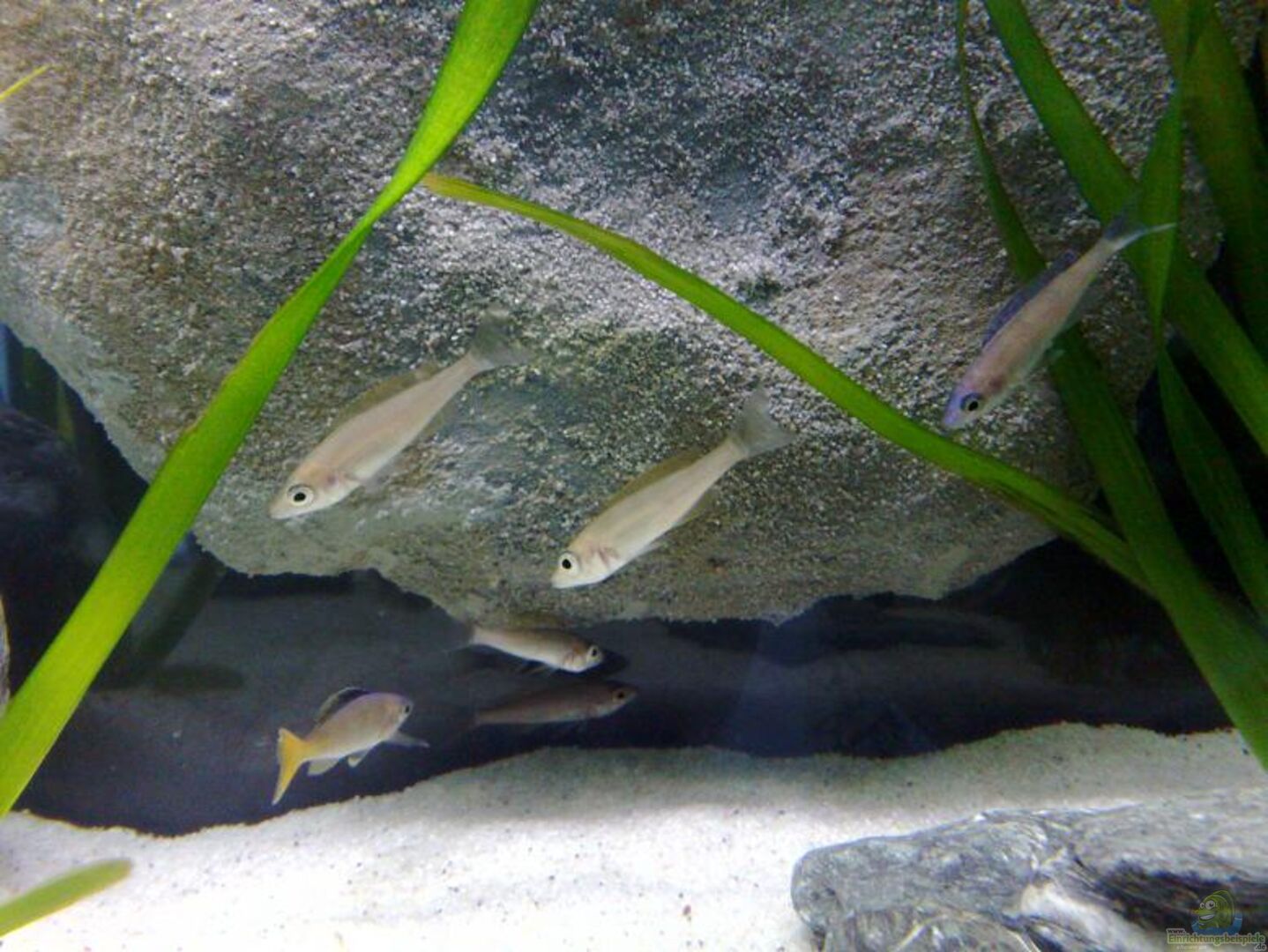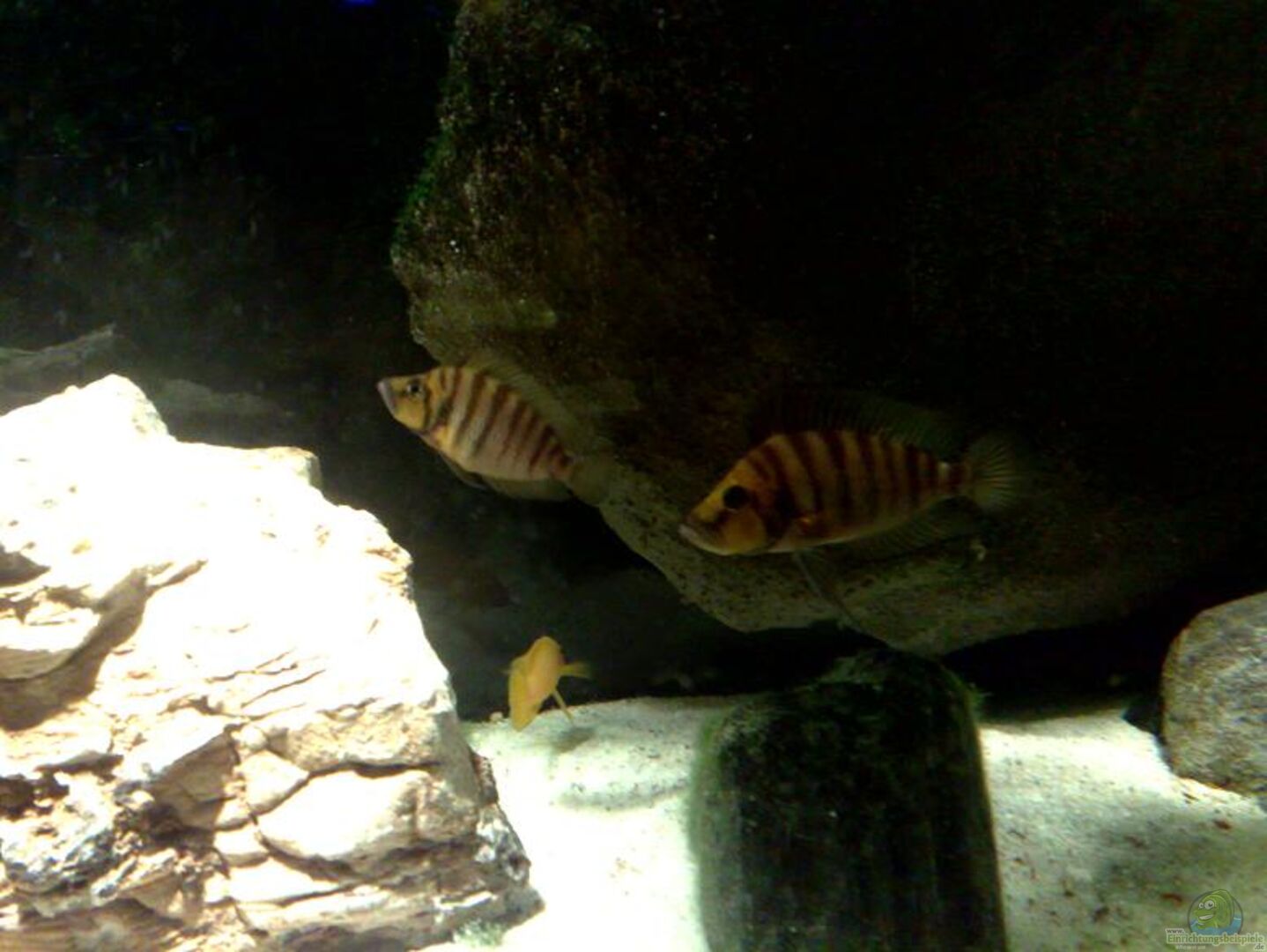 26.11.09 neuer Nachwuchs turnt durchs Becken. 10 Mini Fischi kreisen um den Steinhaufen und kämpfen mit den ´riesen´ Artemia-Stückchen. Hoffentlich regelt sich das bald auf dem natürlichen Weg.. (in Form von Altolamprologus)