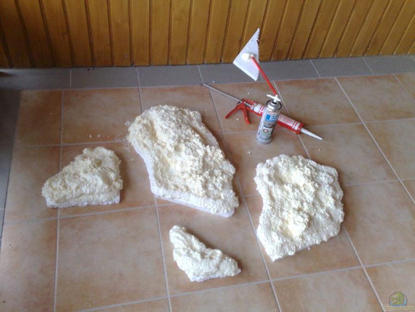 - Rückwand hinter dem Becken in schwarz -- verschiedene Module im Becken -- alles im Eigenbau