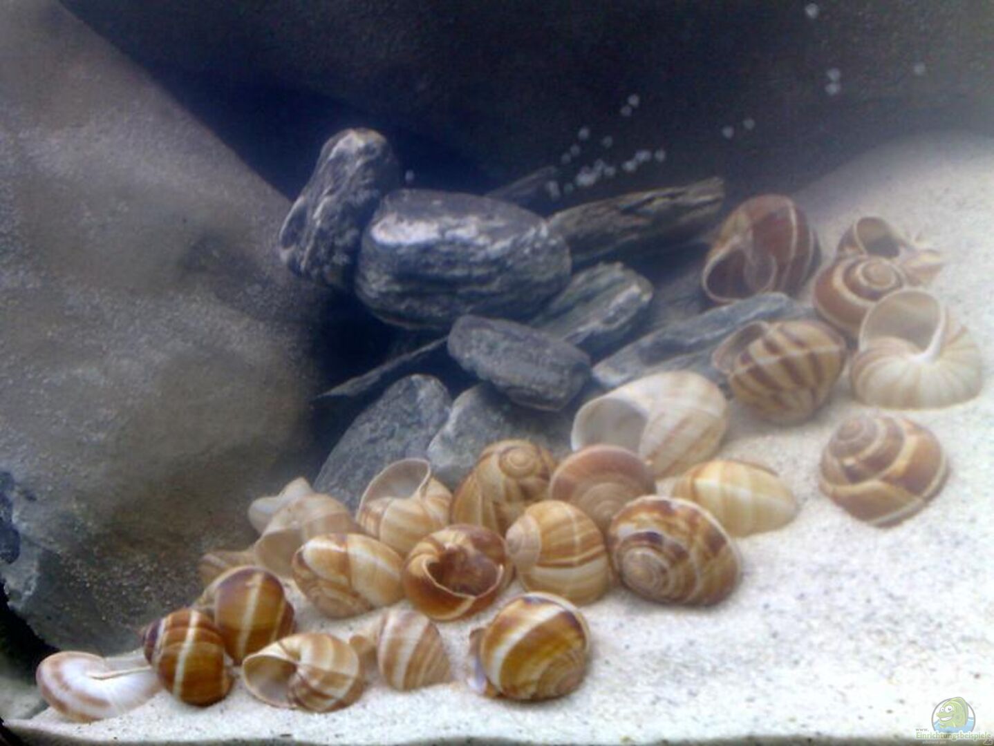 Auch das Einbringen von gro??en Schneckenhäusern ist von Vorteil, da diese als Wohn- und Bruthöhlen eindeutig bevorzugt werden. Eine Vergesellschaftung mit anderen Fischen ist ohne weiteres möglich. Es sollte lediglich auf die Grö??e der Mitbewohner geachtet werden, da sein vorstülbbares Maul ihnen sonst den Gar aus macht. Die Geschlechter sind äu??erlich nicht zweifelsfrei zu unterscheiden, allein die Grö??e und die Beflossung kann hierbei herangezogen werden. Harmonisierende Paare laichen meist in einem Schneckenhaus ab, in dem sich die Jungfische bis zum Freischwimmen aufhalten.