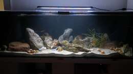 Hey, wer es bis hierher mit dem Lesen geschafft hat, dem ist bestimmt der bewusste ??berbesatz aufgefallen, welcher bereits in dieser Konstellation ein anderes Becken bewohnte, welches nun gegen das hier beschriebene im letzten Jahr ausgetauscht wurde. In der aquaristischen Anfangszeit war ich auf verschiedenen Portalen unterwegs und lie?? mich durch leider meist selbsternannte "Könner" beraten. Dort wurden mir Vergesellschaftskombinationen, sowie Einrichtungsideen, Zuchtstrategien und anerlesene Beckenformate um die Ohren geworfen. Artig hatte ich dann versucht, all den Anmerkungen gerecht zu werden mit dem Ergebnis vieler kranker oder sogar toter Tiere. Durch meine Leidenschaft der Fotografie, habe ich meine Fische immer gut auf dem Schirm und beobachte sie auch sehr genau. Ich verabschiedete mich dann sehr von all den Anleitungen und pflegte meine Becken intuitiv- et voila! Seitdem gibt es keine nennenswerten Probleme. Ganz im Gegenteil: nach 4 Jahren wurde ich das erste Mal mit Nachwuchs im Tanganjikabecken durch meine Calvus belohnt und seitdem folgen auch die anderen Arten.