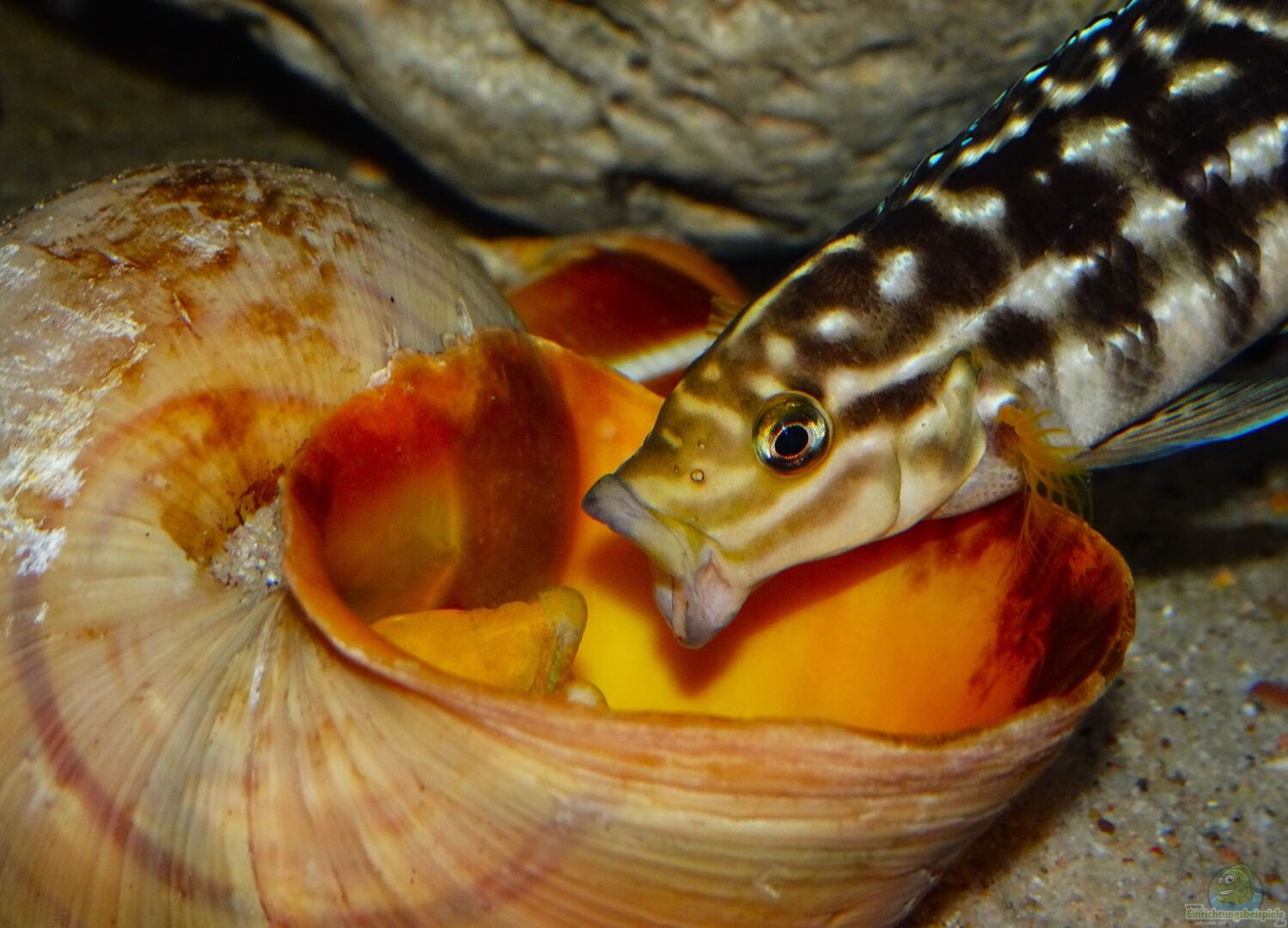 08.06.2022 Update: 2 Cypris, 2 N. longior und 2 N.caudopunctatus werden im seperaten Aufzuchtbecken gro??gezogen. Die adulten Tiere machen sich prächtig und einige haben als Paare schon wieder Schneckenhäuser besetzt. Bei den Fadenmaulbrütern geht es allmählich los. Bereits zweimal hatte ein junges Weibchen das Maul voll, jedoch war das selbsthergestellte Futter zu interessant und die Kinderchen wurden verschlungen. Nunja, früh übt sich, das wird noch!