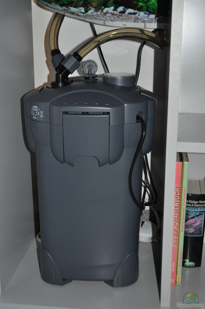11.03.2013 : Ich habe den Innenfilter aus dem Becken genommen, um damit nun mein kleines 54 Liter Südamerikabecken zu betreiben. Ein anderer Innenfilter, zur Filterung grober Partikel und zur Strömungserzeugung, ist bereits über Ebay gekauft und wird eingesetzt, sobald er geliefert wurde.