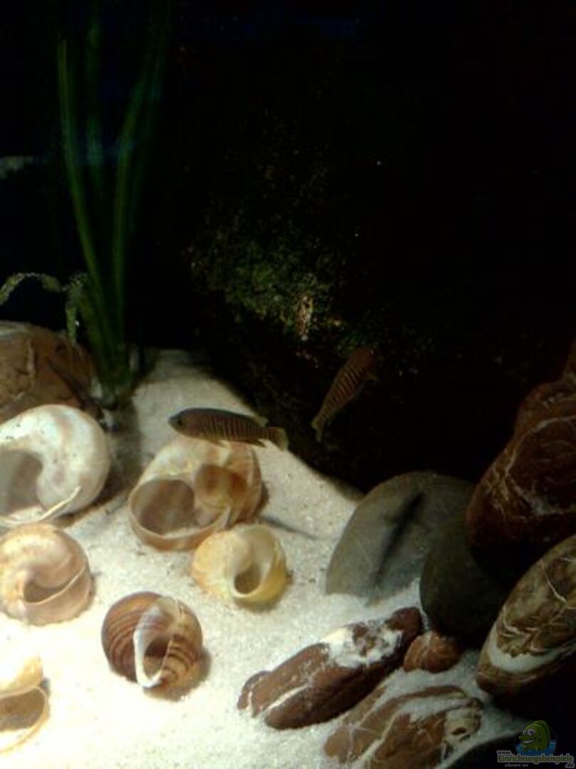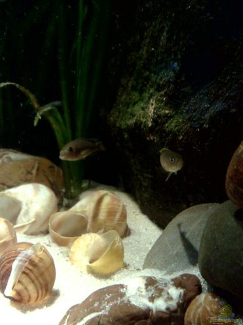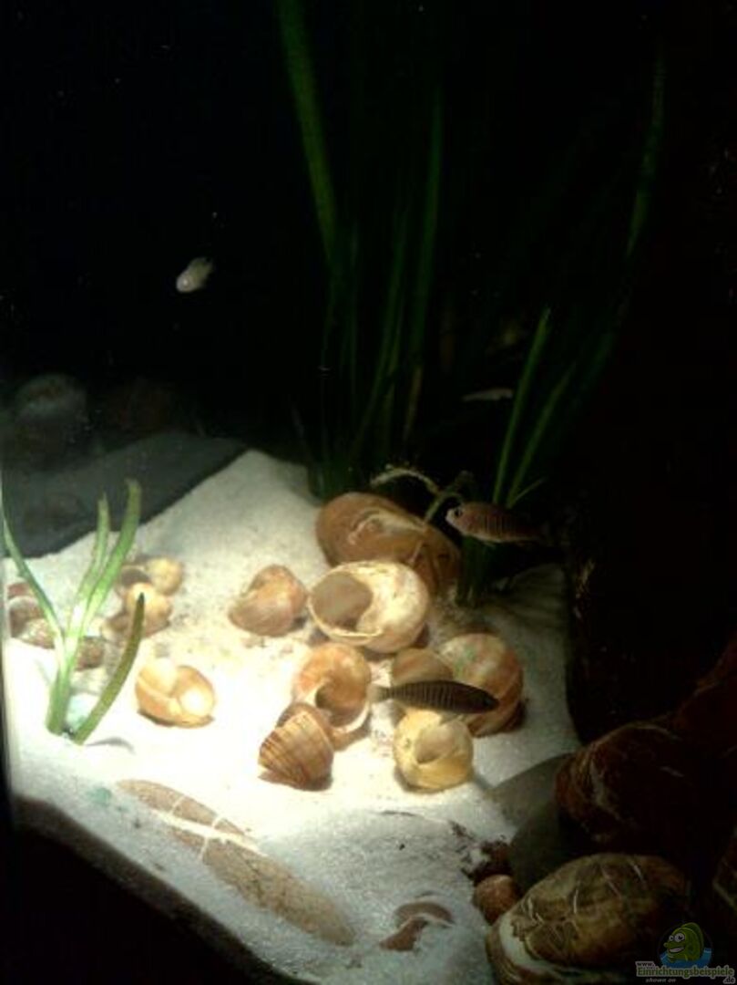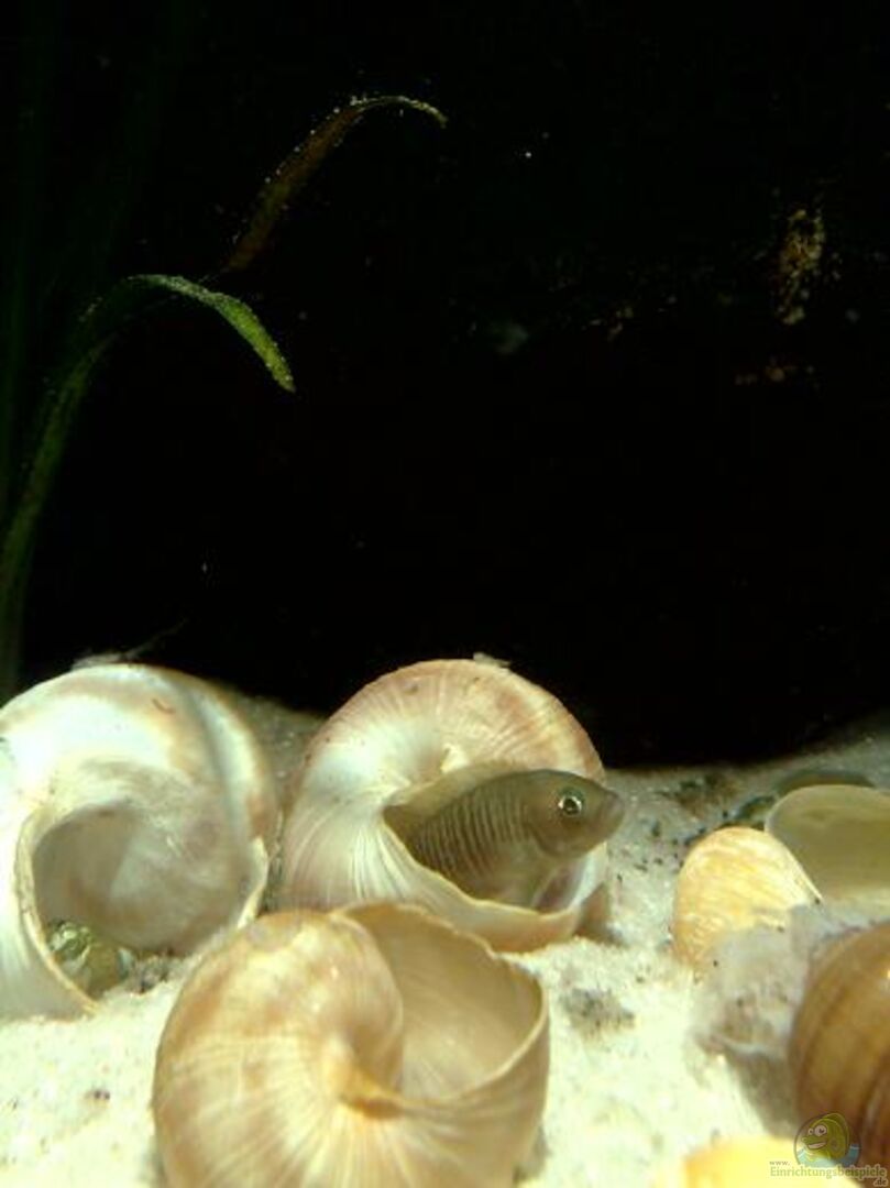 °°~~°° wie viele Schneckenbuntbarsche vollzieht auch dieser Fisch Erdbewegungen um seine Schneckenhäuser in die gewünschte Position zu bringen. °°~~°°