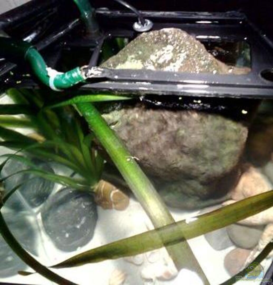 °°~~°° (Dieser 15Kg Stein, wurde mit Styropor unterbaut und steht direkt auf dem AQ-Boden. Zudem wurde er, um nicht zu stürzen, an der Beckenoberkante gesichert..... falls die kleinen Burschen nun wirklich so im Sand wühlen, wird der Fels trotzdem nicht wanken...) °°~~°°