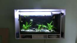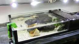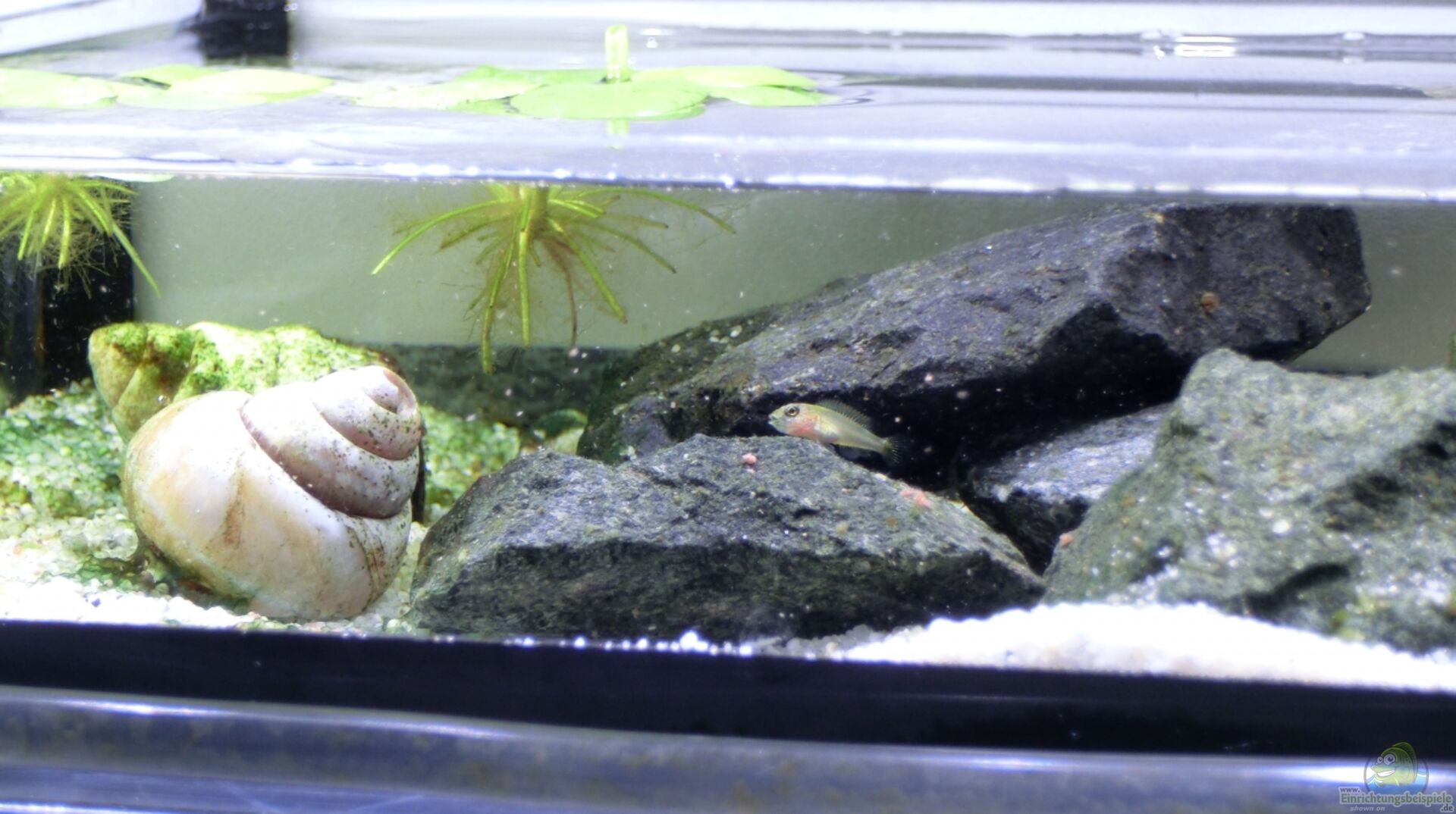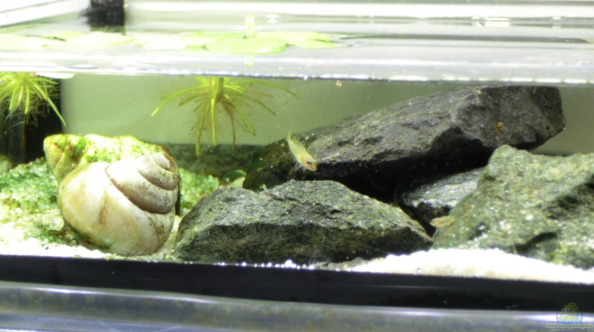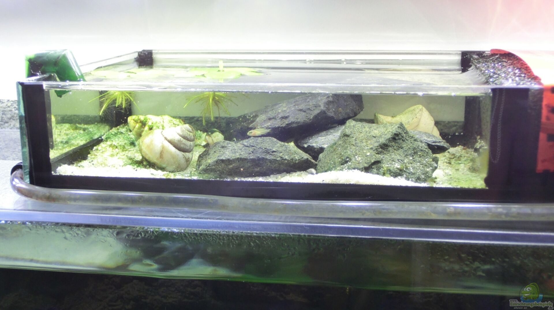 Für Zuchtversuche: mini Becken, das ohne extra Pumpe auskommt und hinter dem Rahmen Platz findet.