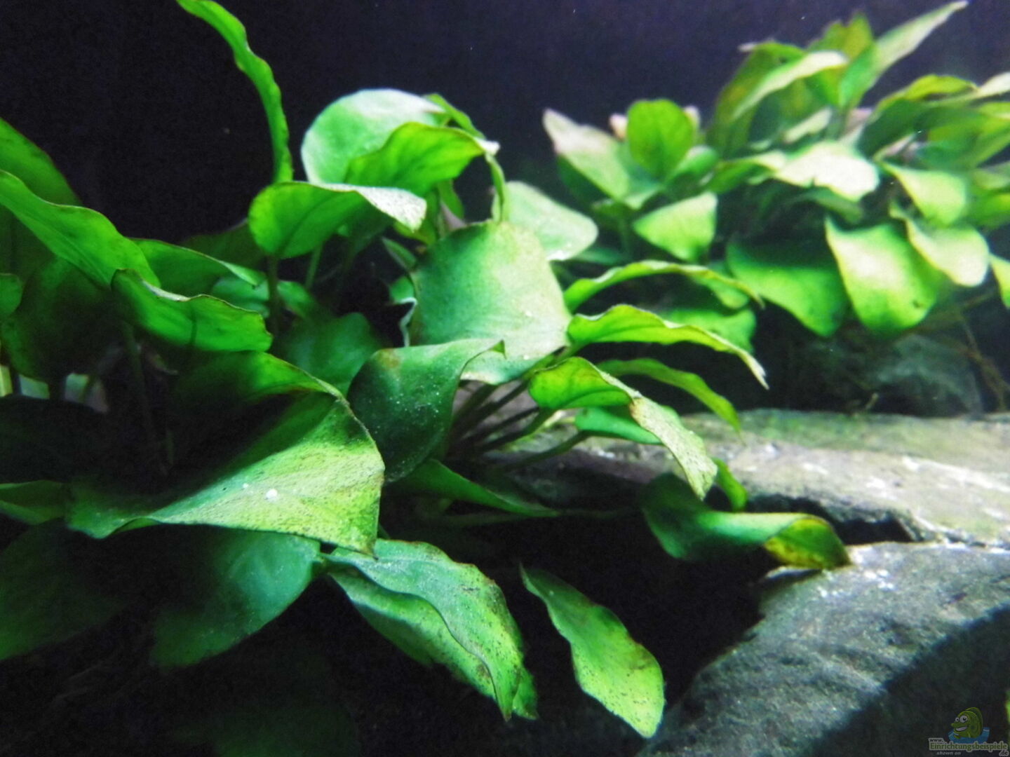 Als Pflanzen habe ich die anubias barteri var. nana. Ich finde das die Pflanze sehr gut in ein Schneckenbuntbarsch Aquarium passt, da man sie an steine binden kann und diese auch sehr schön wächst.