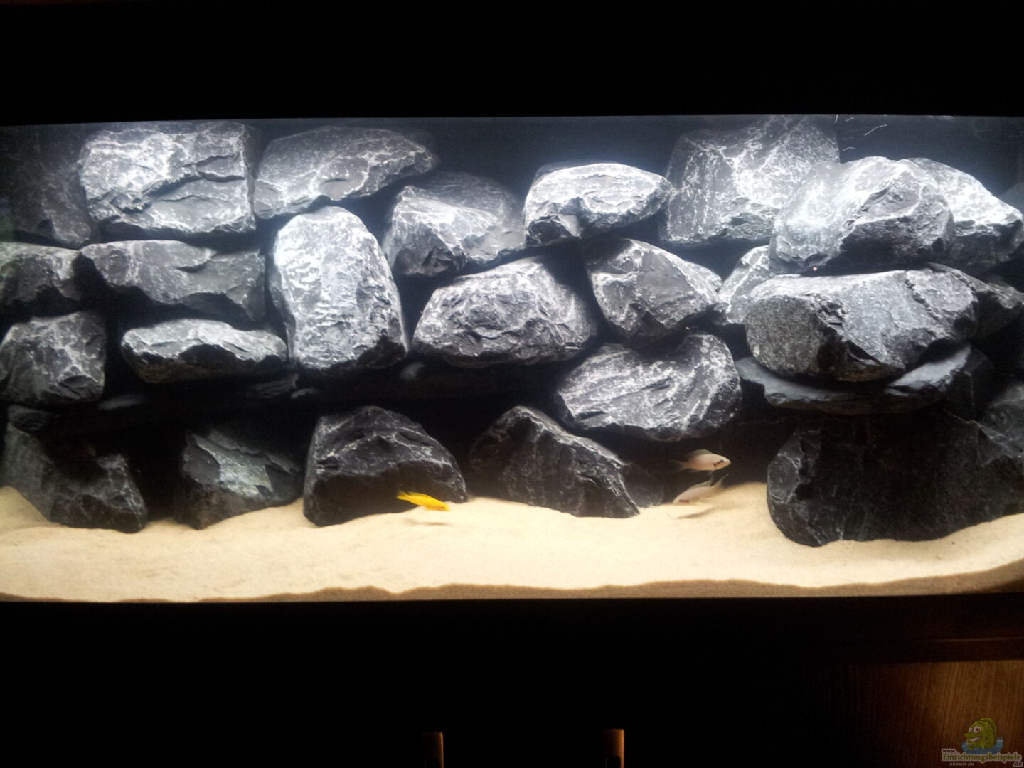 - Steine umstrukturiert, Anubia und Schwarzwurzelfarn eingebracht um Reviere abzugrenzen und Sichtbarriere zu schaffen. Wurde sehr gut angenommen und akzeptiert, vorallem N.brichardi hatte zuvor den freien Raum als sein Revier betrachtet.