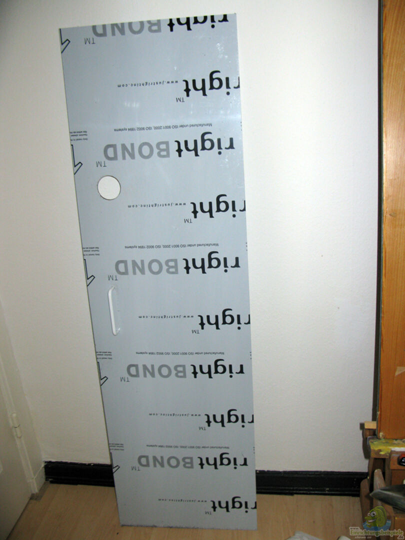 Diese besteht aus einer 150 x 50 cm Siebdruckplatte, an den Seiten jeweils eine 5 x 50 x 1, 6 cm, wei??eschichtete Spanplatte, verstärkt oben und unten mit Vierkantleisten 2 x 2 cm.