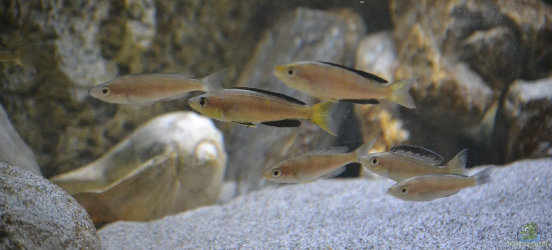 Der Besatz steht und die Tiere schwimmen seit einigen Tagen im neuen Becken. Neben den schon bestehenden Besatz aus Callochromis stappersii "Ikola" und Altolamprologus compressiceps "Golden Head" haben wir uns für eine 15er Jungtiergruppe Cyprichromis microlepidotus "Bulu Point" und eine 5er Gruppe Lamprologus ocellatus "Gold" entschieden.