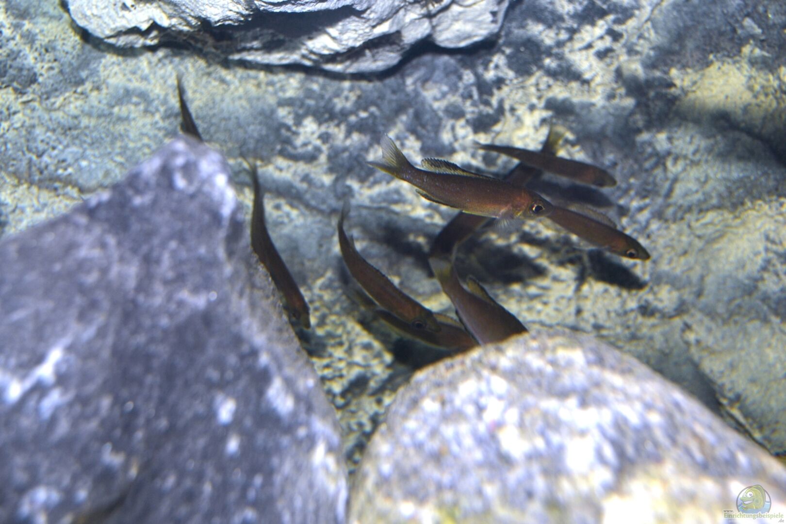 Im Oktober ist ein junges Paar Neolamprologus buescheri "kamakonde" ebenfalls aus meinem anderen Becken eingezogen und bewohnt jetzt den linken Steinhaufen.
