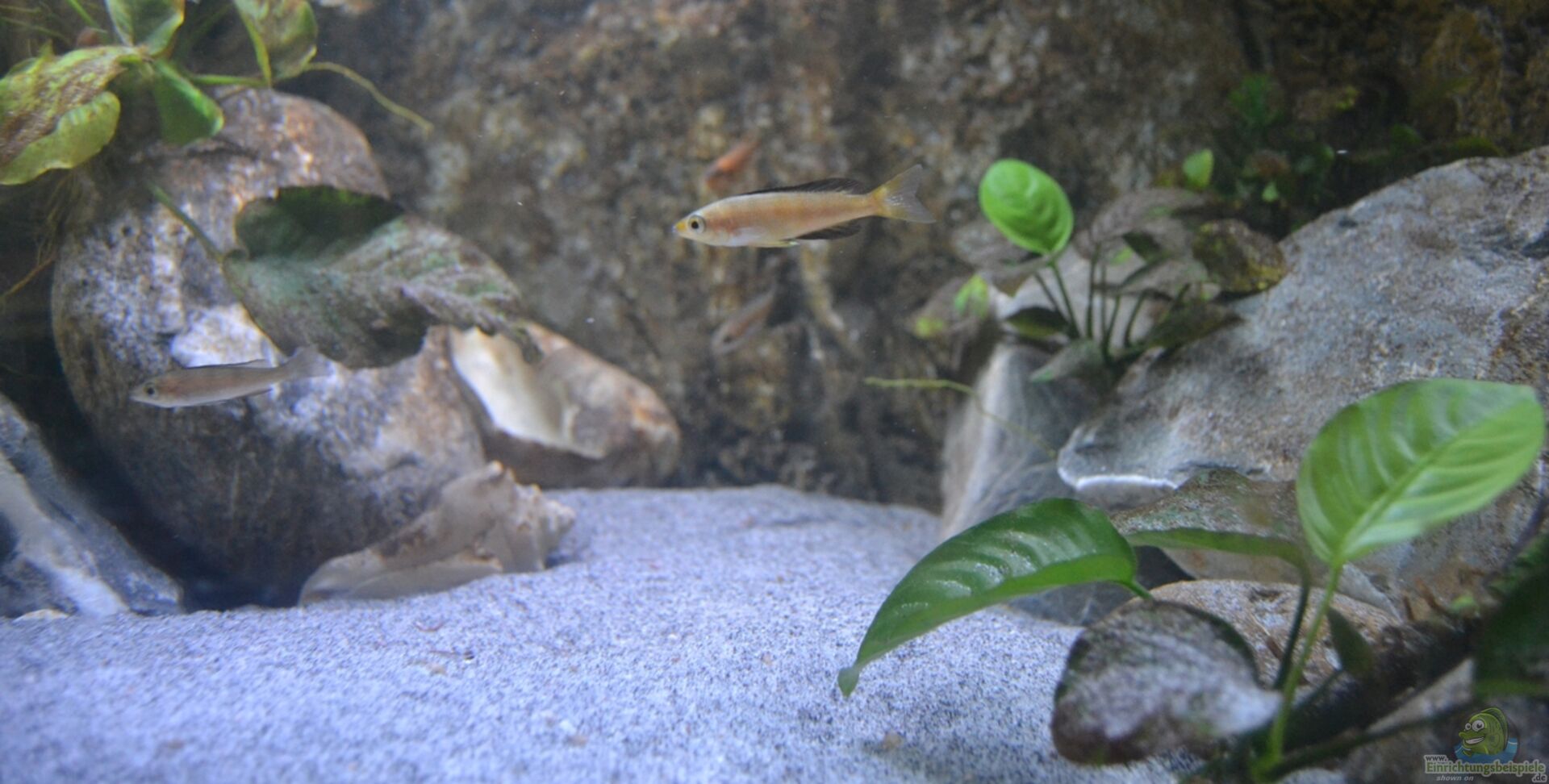 Im Oktober sind die Lamprologus ocellatus "gold" bis auf ein unverträgliches Männchen in mein anderes Becken umgezogen, dafür sind 1/2/3 Neolamprologus similis eingezogen und haben ihren Platz rechts vor dem HMF bezogen.