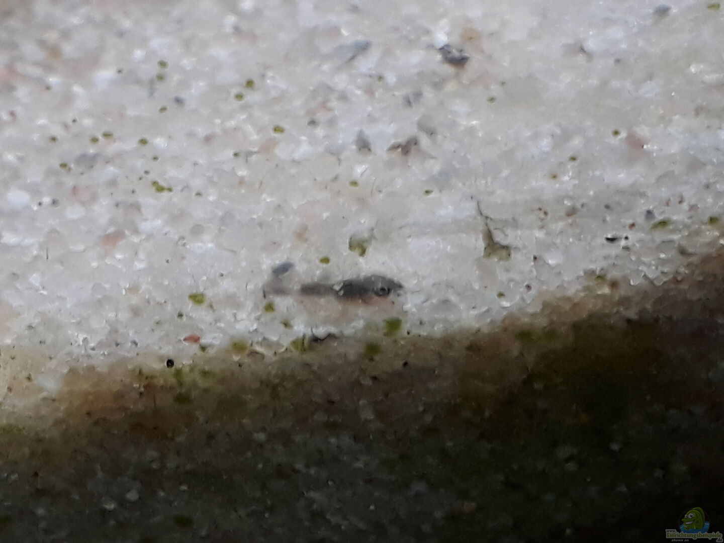 Das Becken läuft auch nach knapp 2 1/4 Jahren noch reibungslos. In Regelmä??igen Abständen kann ich mich an neuen Jungtieren erfreuen. Die Jungtiere wurden bisher von mir nie zur Aufzucht in ein separates Becken gegeben, da auch in dem Becken mit den adulten Tieren immer Jungtiere überlebt haben. Sobald die Tiere dann eine Grö??e von ca. 3 cm erreicht haben gebe ich diese ab.