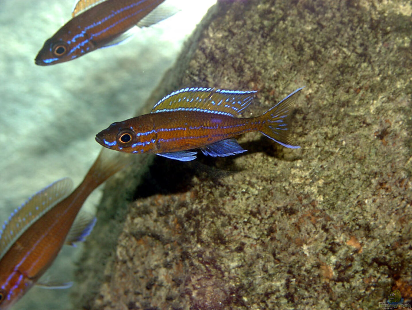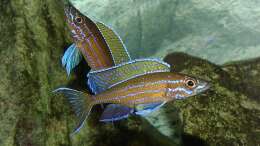 Neolamprologus mulitfasciatus (2m / 3w), derzeit mit Nachwuchs.
