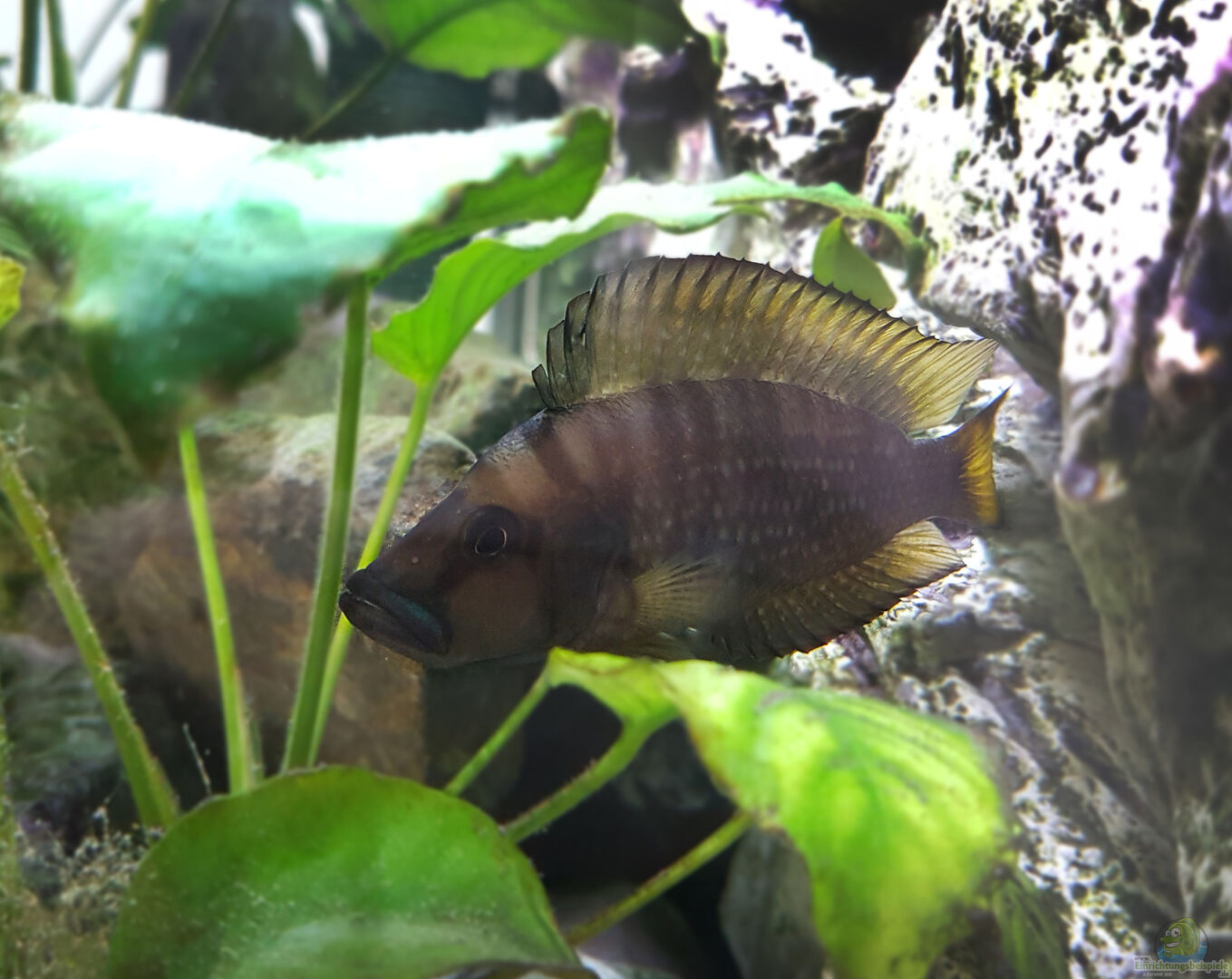 Viele Steine wurden als Versteckmöglichkeiten ins Aquarium gegeben. Die Höhlen dienen als Versteck oder Brutplatz