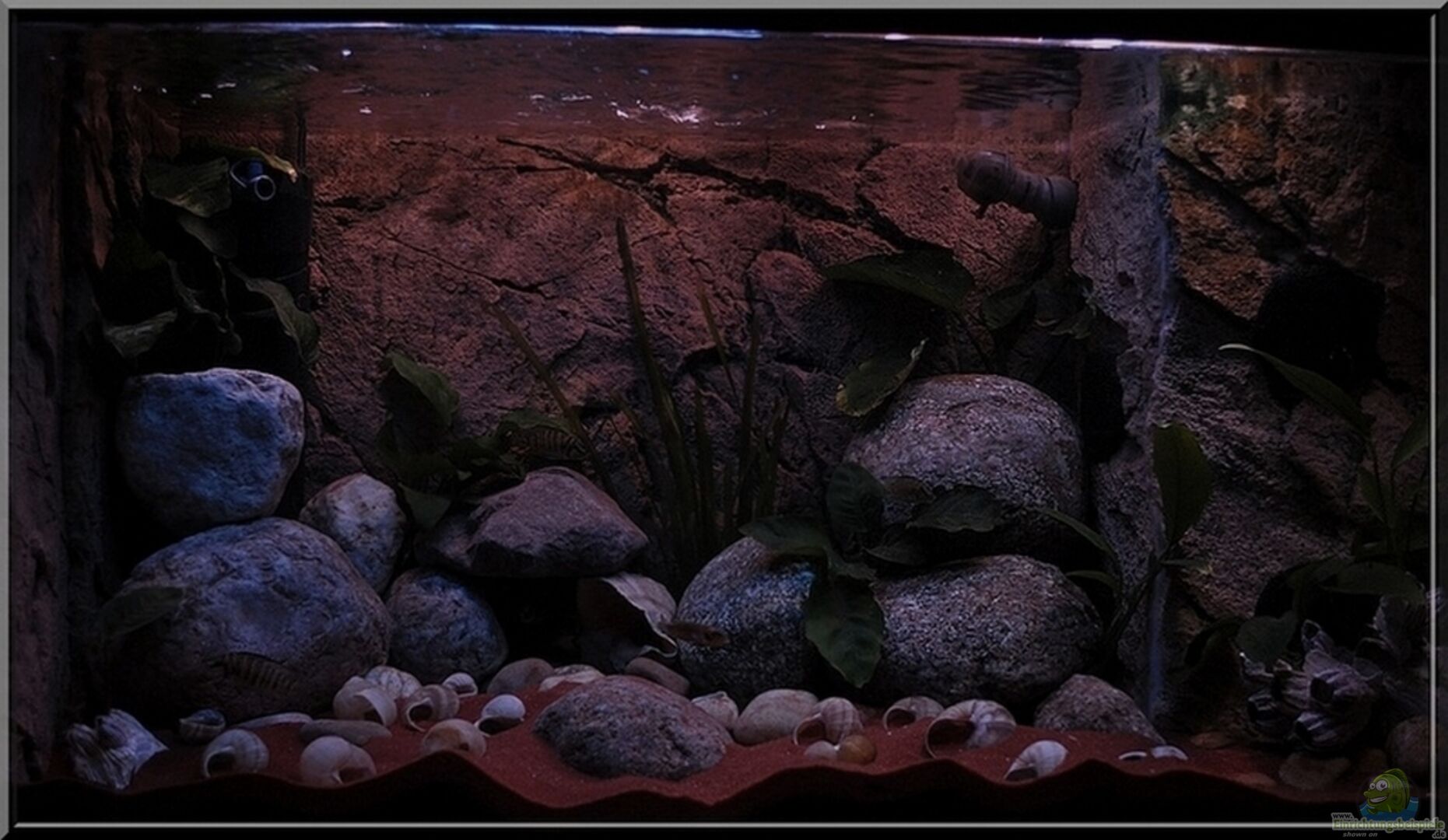 gefällt mir sehr gut.. Auch der Besatz ist gut gelungen, die Ocellatus sind die schönsten Schneckenbubas und die Fotos sind Dir echt super gelungen. Am schönsten empfand ich immer, wenn man ans Becken trat und die Kleinen ruck-zuck in ihren Häuschen verschwanden und dann immer rauskuckten ob die Luft schon wieder rein ist ;o)