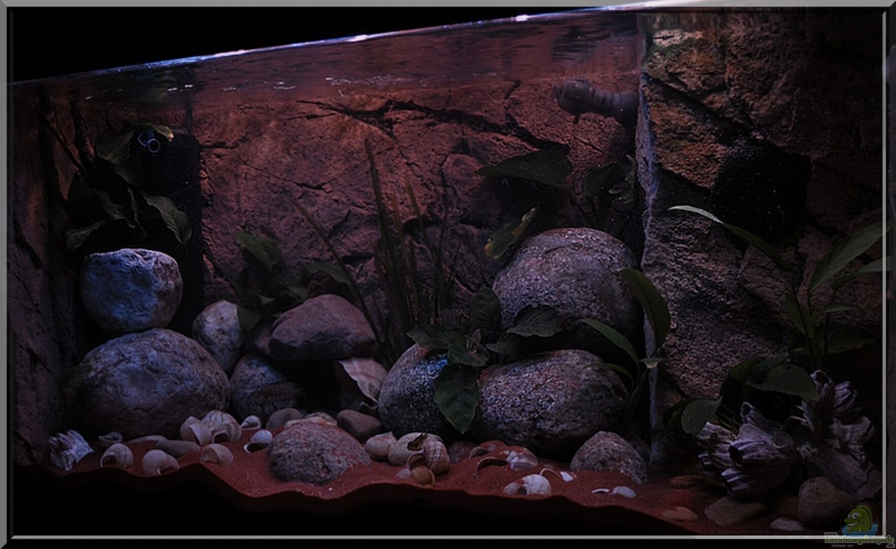 Das Aquarium sollte wie schon erwähnt so einrichten, dass mit Hilfe von Steinaufbauten eine Anzahl von Höhlen geschaffen wird, die zugleich eine Abgrenzung mehrerer Reviere erleichtert. Bei so einer Einrichtung des Beckens ist es auch möglich, ihn mit robusteren Tanganjikaseecichliden zu vergesellschaften.