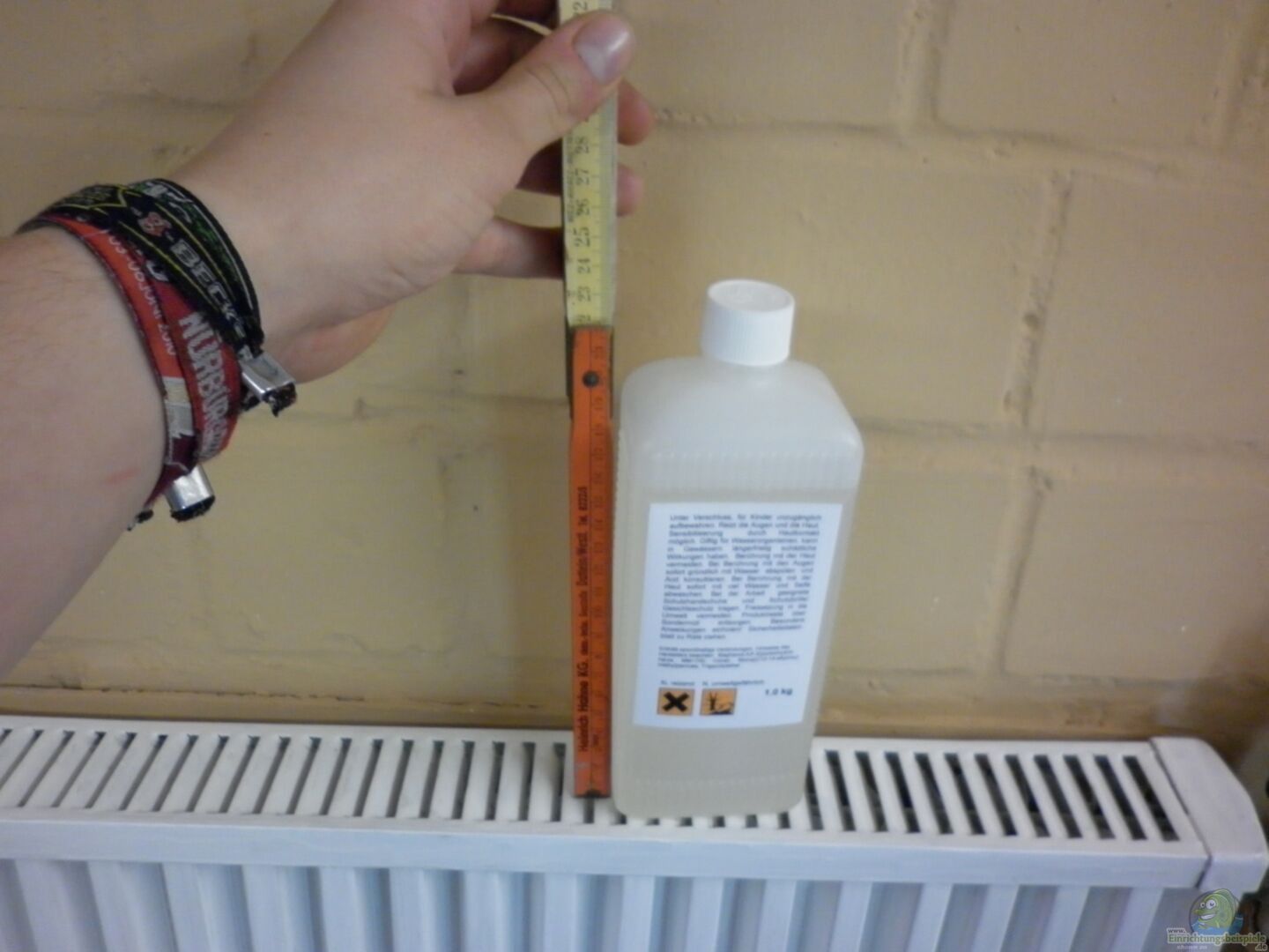 HMF über Eck mit ner 850l/h Pumpe und einer Matte mit den Ma??en 50x60cm, dahinter Filterwatte