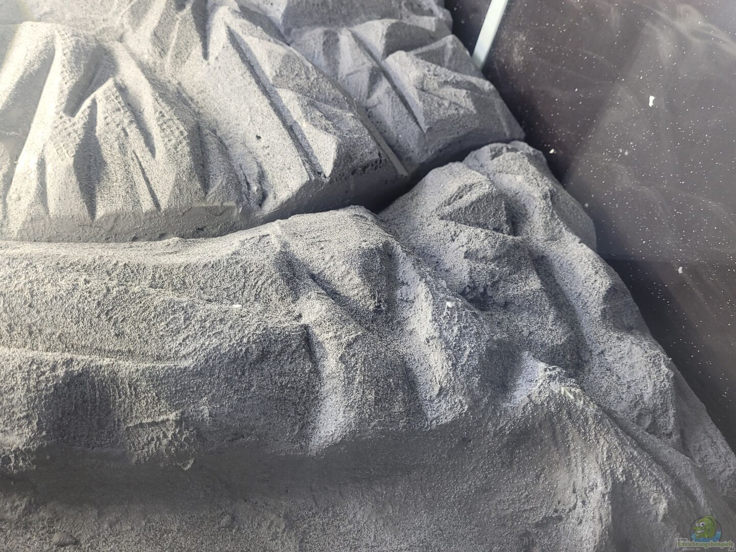 Als Bodengrund sind etwa 30kg JBL Sansibar in der Farbe Grey im Becken. Die Schichthöhe wird von den N.similis täglich neu festgelegt. Es wird hier und da gegraben.