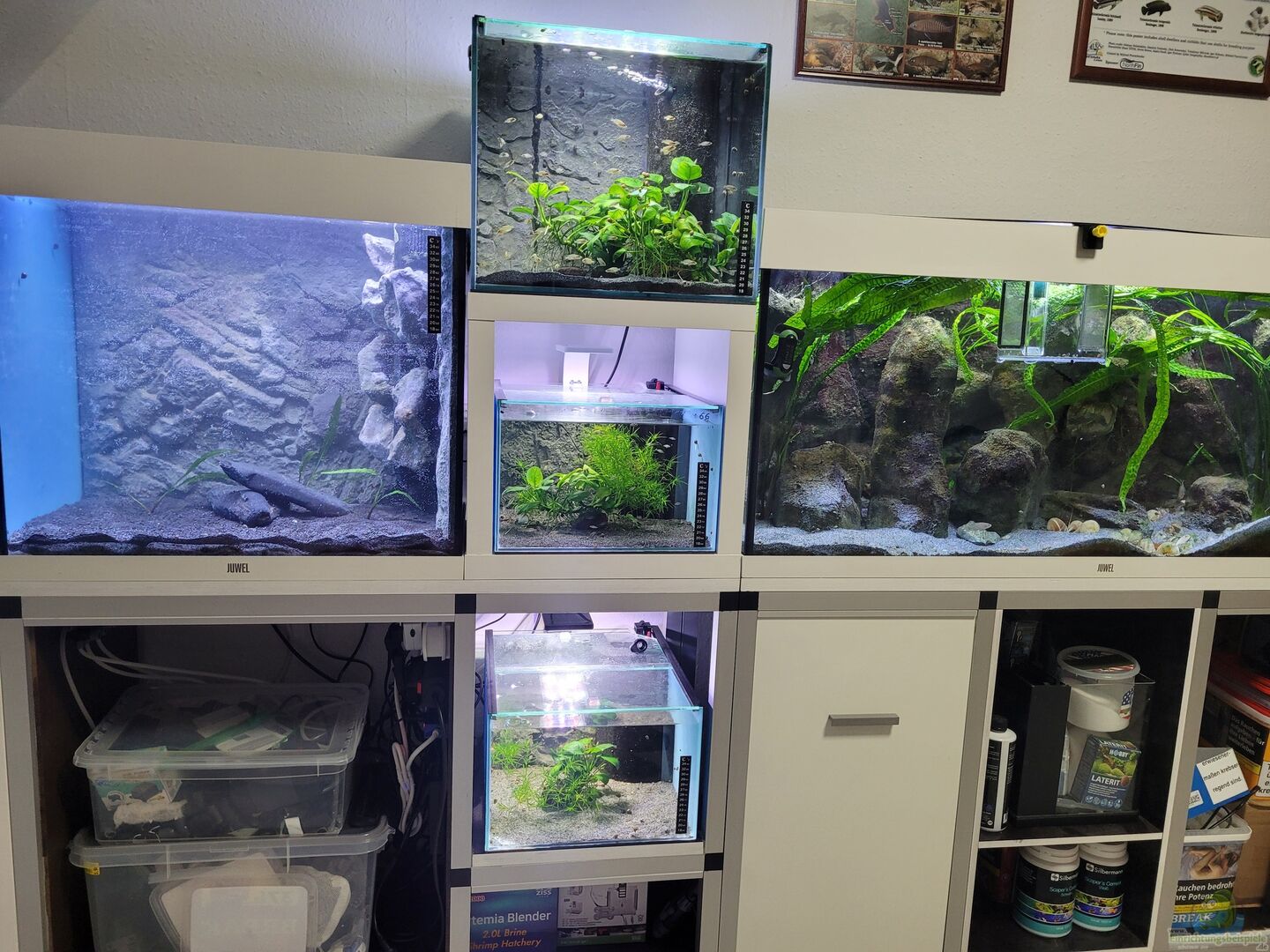Das Becken hat mittlerweile eine wunderschöne Patina, es sind noch paar Becken hinzugekommen, die Altolamprologusbruten sind fast komplett bis auf etwa 40 Tiere im 120er Lido untergebracht. Die anderen Becken sind für ein neues Projekt geräumt, werde mich zusätzlich noch an Lamprologus kungweensis versuchen und mal schauen was wird.