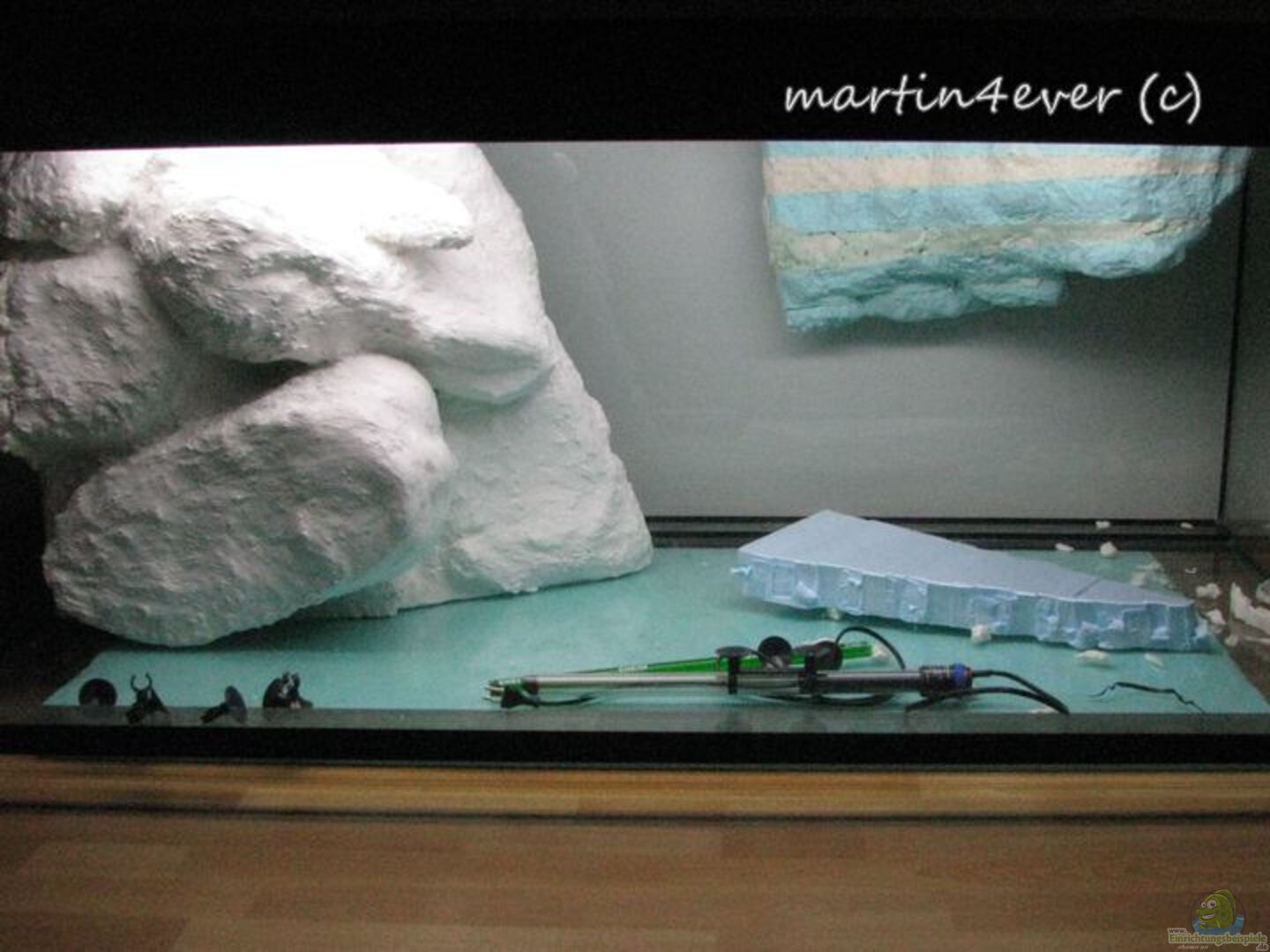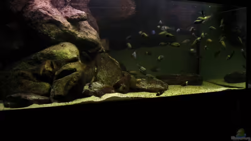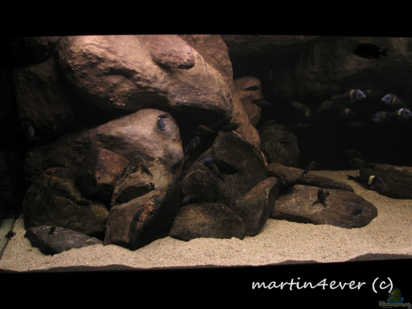 zugegeben, optisch ist das Becken ein Kracher. Die Gestaltung der Rückwand und die Einrichtung ist absolut klasse und die Fische sind es sowieso. Aber zwickt mich mal einer, falls ich mich täuschen sollte, auch wenn ich im Tanganjikasee nicht so zu Hause bin. Aber in einem Brutto 720 - Liter-Becken sind hier Stück 71 Fische untergebracht, die es im Schnitt auf eine Grö?e von mehr als 10 cm bringen. Und bei der bombastischen Gestaltung gehen doch sicher noch mal 150 Liter für die Rückwand und die Steine drauf. Bin ich nur verwirrt, oder ist das Becken hoffnungslos überbesetzt. Kann mich bitte mal jemand aufklären?