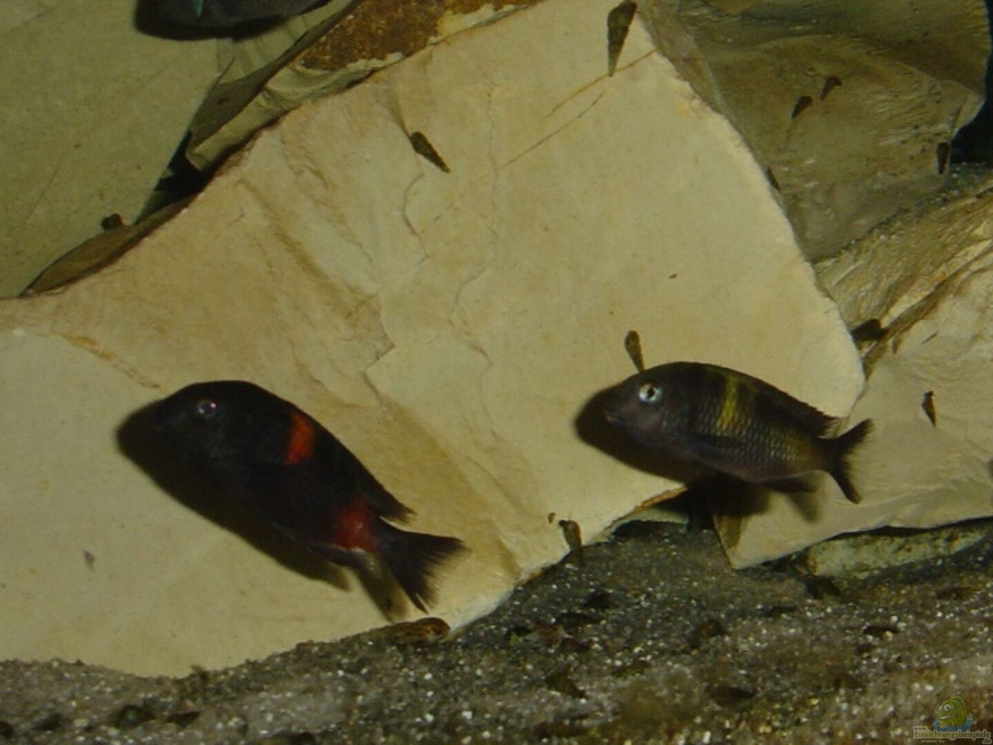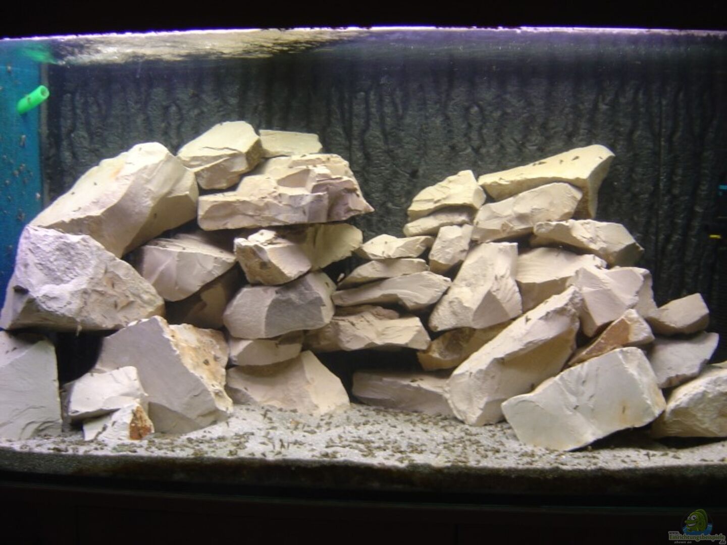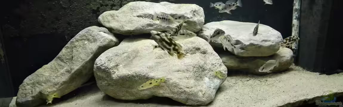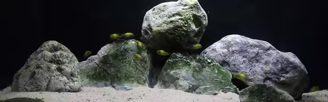 Einrichtung: nach die Tropheus die Höhlen kaum angenommen haben, hab ich ich einige Steine rausgeworfen. So hat jetzt auch jedes von den beiden im Moment dominanten Männchen seinen eigenen Steinhaufen. Evtl. nehme ich noch ein paar Steine raus.