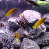 Die Entscheidung das Becken mit einem leichten ??berbesatz zu besetzen, beruht auf eigenen positiven Erfahrungen. Die vorhandene innerartliche Aggression der Tropheus wird dabei auf viele Individuen verteilt und dabei deutlich abgeschwächt.