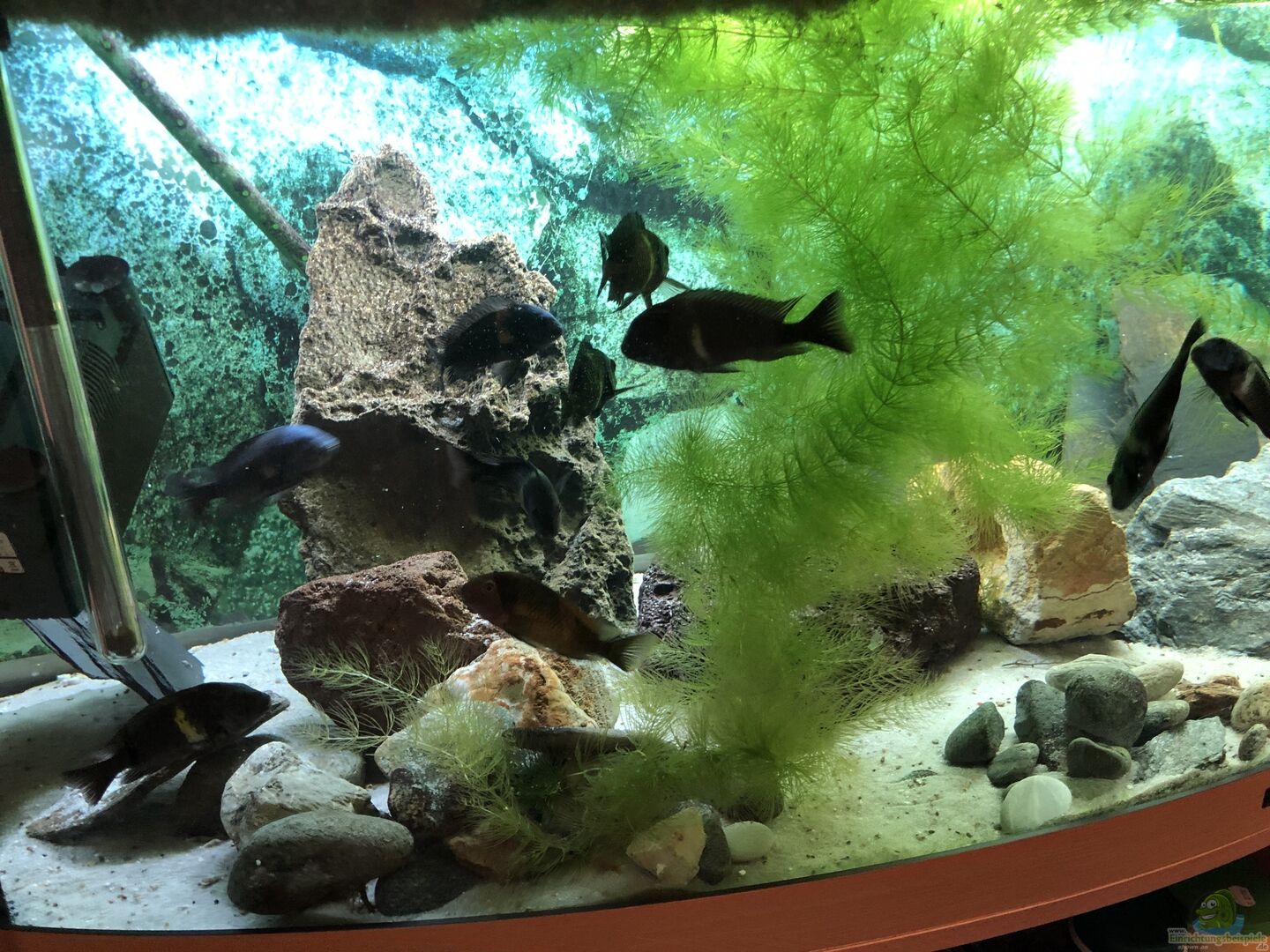 01.05. 2021 - Genau zu Neujahr 01.01.2021 waren die ersten Tropheus-Babies wieder zu sehen! Zwei grö??ere Jungtiere schwimmen jetzt im Becken umher. Und dann kamen genau am Oster-Sonntag (04.04.2021) die nächsten Babies von der selben Mutter. Diesmal betrieb sie aber sehr lange Maulbrutpflege und hat die Jungtiere bis vier Wochen nach dem ersten freilassen zu Ostern noch ins Maul genommen. Bei der zweiten Brut sind jetzt noch sieben Jungtiere zu sehen. Meine geliebte TROPHEUS DUBOISI MASWA Gruppe, deren Eltern ich 2009 erhalten habe, ist gerettet!! Ich habe sehr gehofft, dass es trotz der wenig verbliebenen und doch schon etwas älteren Tiere noch zu Nachwuchs kommen würde. Aber es hat geklappt. Und nun bin ich (ganz langsam) auf der Suche nach einem neuen Becken. Auch wenn ich mein Juwel Vision 450 sehr ins Herz geschlossen habe. Es steht seit 2003 bei uns und langsam mache ich mir etwas Gedanken... Man wird sehen, wie es weitergehen wird.