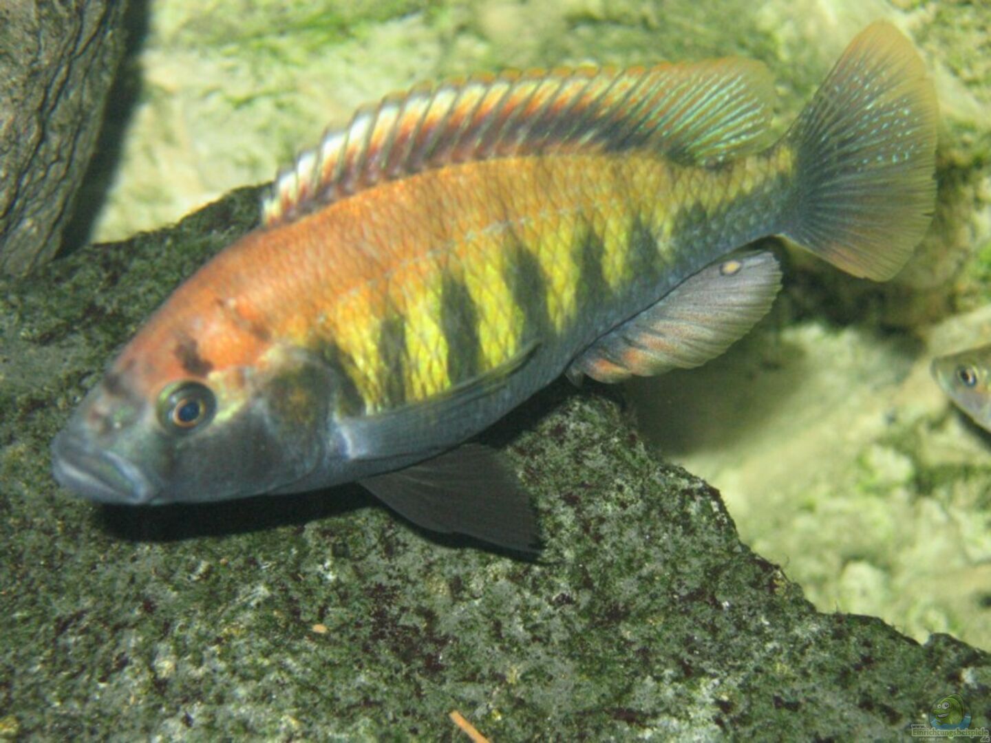 [08/05: z.Zt. 1 voll ausgefärbtes Männchen => Photo, Rest Weibchen oder unterlegene Männchen, CH44 ist BOSS im AQ, besetzt den freien Schwimmraum der rechten Hälfte des Beckens und hat echt ´Arbeit´ den gegen die Masse der Fische und vor allem gegen 2 Ruti Island, welche Ihr kleines Revier in ´seinem´ Steinhaufen eingerichtet haben, zu verteidigen.]