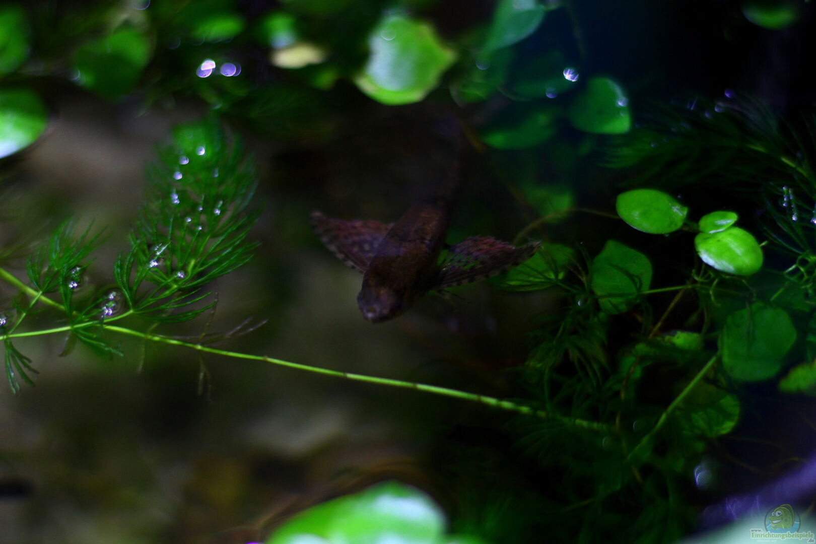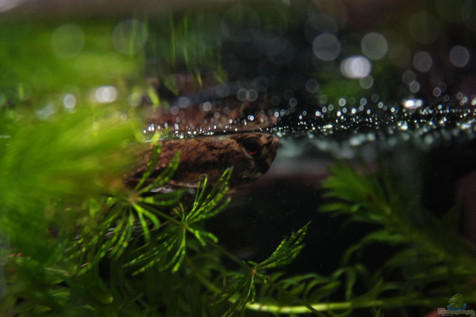 So vorgestern war es endlich soweit und mein Besatz ist eingezogen. 2 junge Pantodon buchholzi und 8 Fundulopanchax gardneri im Verhältnis von 3/5. Anfangs ware alle Tiere sehr scheu und geschlaucht vom Stress und Transport. Gestern und heute haben alle super gefressen und sind auch sonst putzmunter. Die beiden Buchholzi füttere ich im Moment noch von Hand mit der Pinzette bis sie sich durchzusetzen wissen gegen die schnellen Killis.