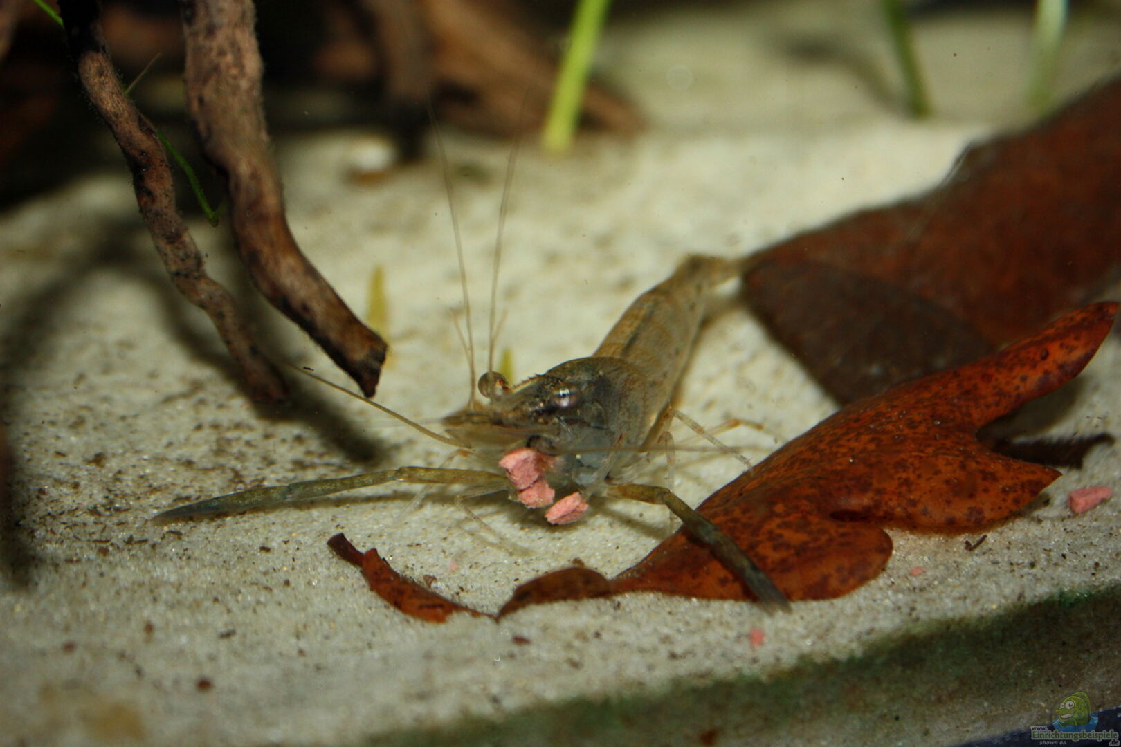 Ein weiterer junger Pantodon hat das Becken bezogen und zudem 5 Macrobrachium. Die Art ist im Moment zur genauer Artbestimmung gegeben. Sie kommt aus Nigeria. Macrobrachiumarten sind ansonsten fast weltweit in vielen Unterarten zu finden.Seit die Bucholzis zu dritt sind hat sich ihr Verhalten komplett geändert. Sie zeigen ein ausgeprägtes Sozialverhalten und habe jegliche Scheu abgelegt. Auch das Fressverhalten hat sich komplett geändert, es wird nun alles gierig genommen was die Oberfläche berührt