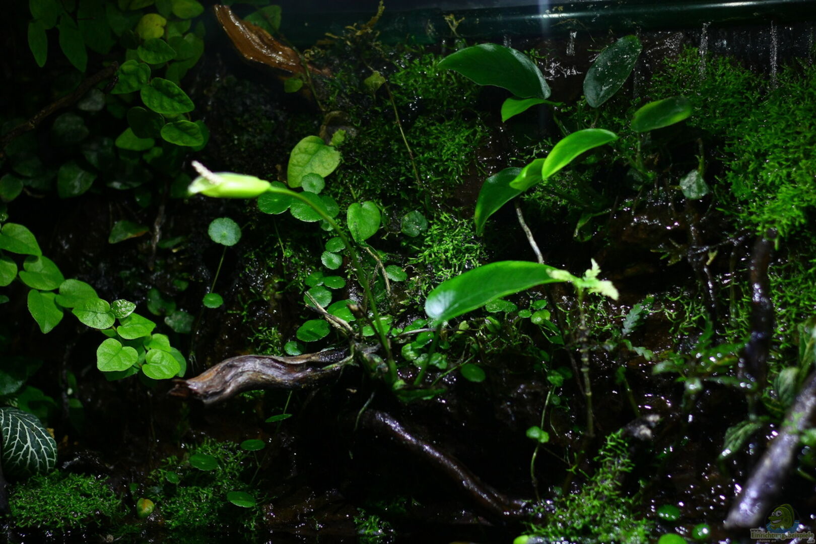 Ich habe hinter dem Becken zwei kleine Töpfe angebracht, so das die Ranken ins Becken wachsen können. Dies ist der Tatsache geschuldet das ich keinerlei Substrat auf der Rückwand anbringen wollte, welches die Pflanze benötigt.