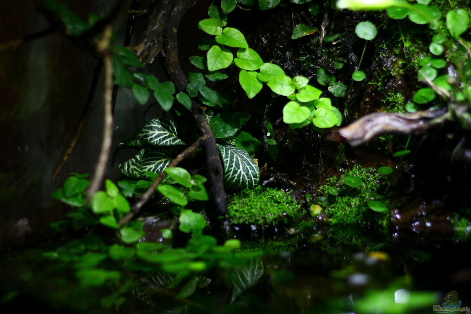 Es handelt sich hierbei um ein Paludarium, welches bis etwas über die Hälfte befüllt ist
