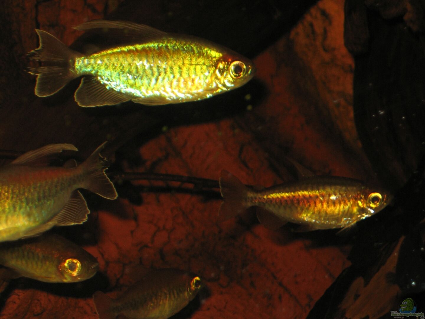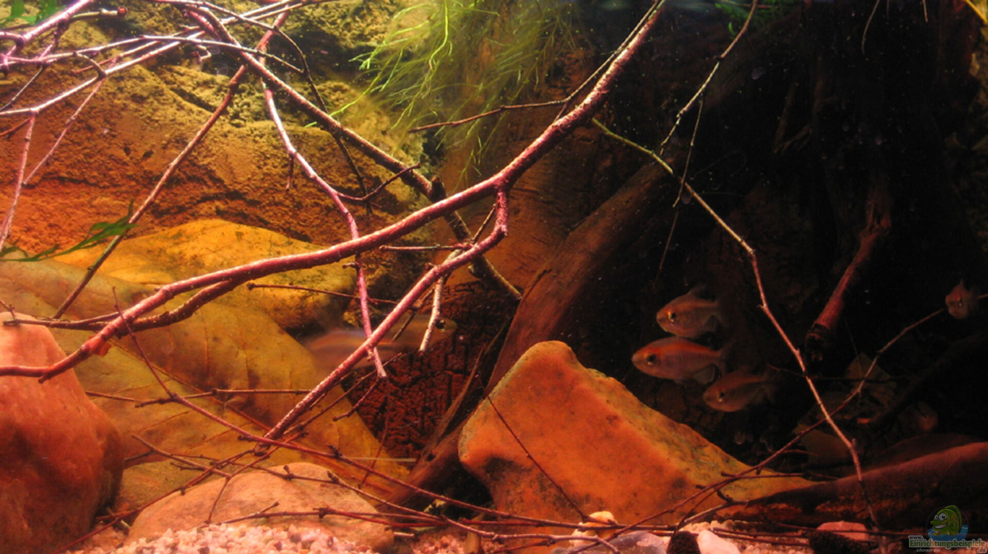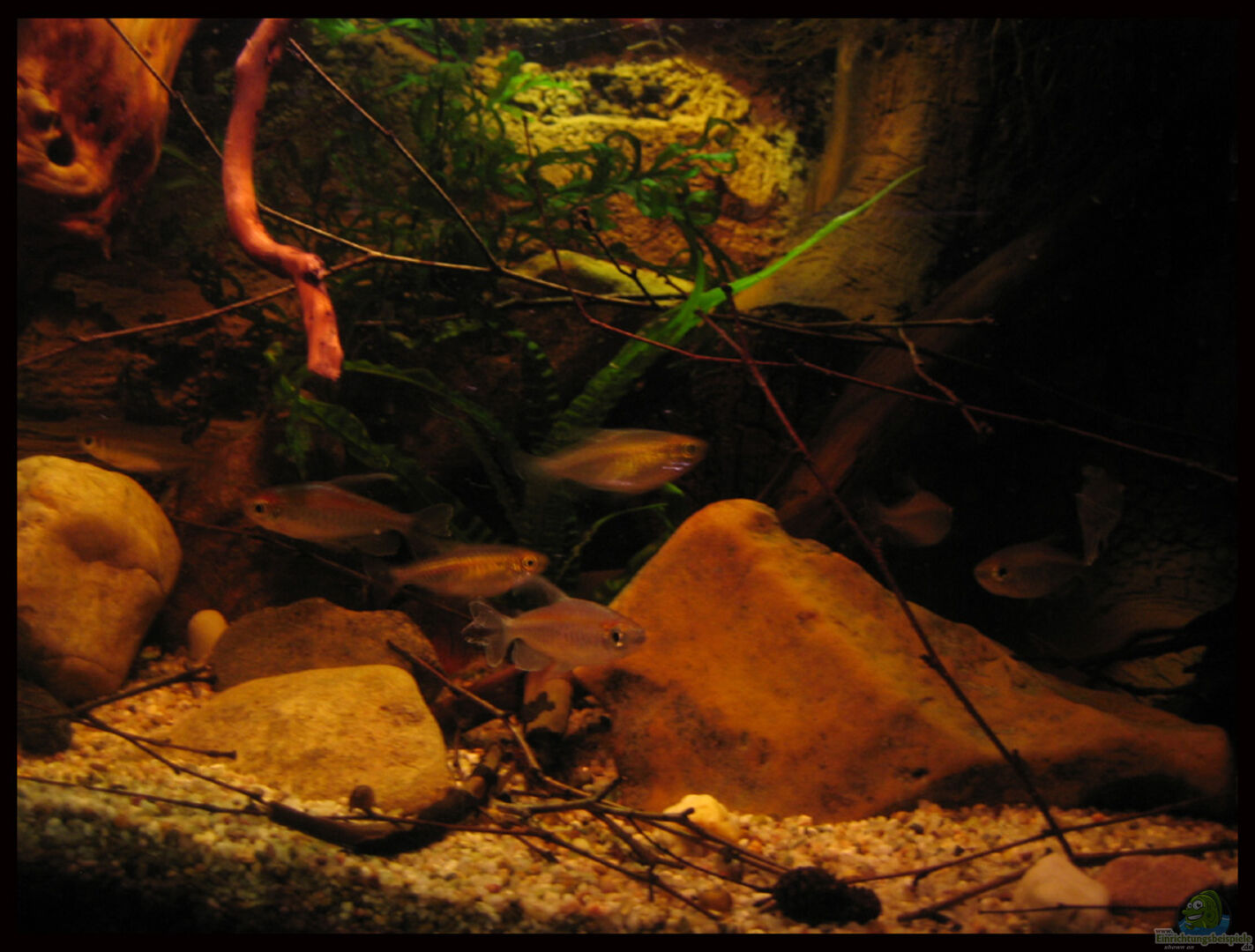 Mein Becken bietet die Mindestgrö??e für Kongosalmler, da sie sehr schwimmfreudig sein können. Es handelt sich bei mir um ein reines Artenbecken mit einem kleinen Schwarm (3/5). Ausreichende Strukturierung zur Revierbildung, Deckungsfindung, aber auch freier ungestörter Schwimmraum muss (und ist) vorhanden sein, dann steht dem Glück der Kleinen nichts im Wege. Sie sind bei mir noch nicht komplett ausgewachsen und kann zum jetzigen Standpunkt sagen, dass sie das Becken (au??er bei der Fütterung) nur zu 2/3 nutzen. Linkes Drittel mit Filterauslauf und eher hellerem Licht wird meist gemieden.