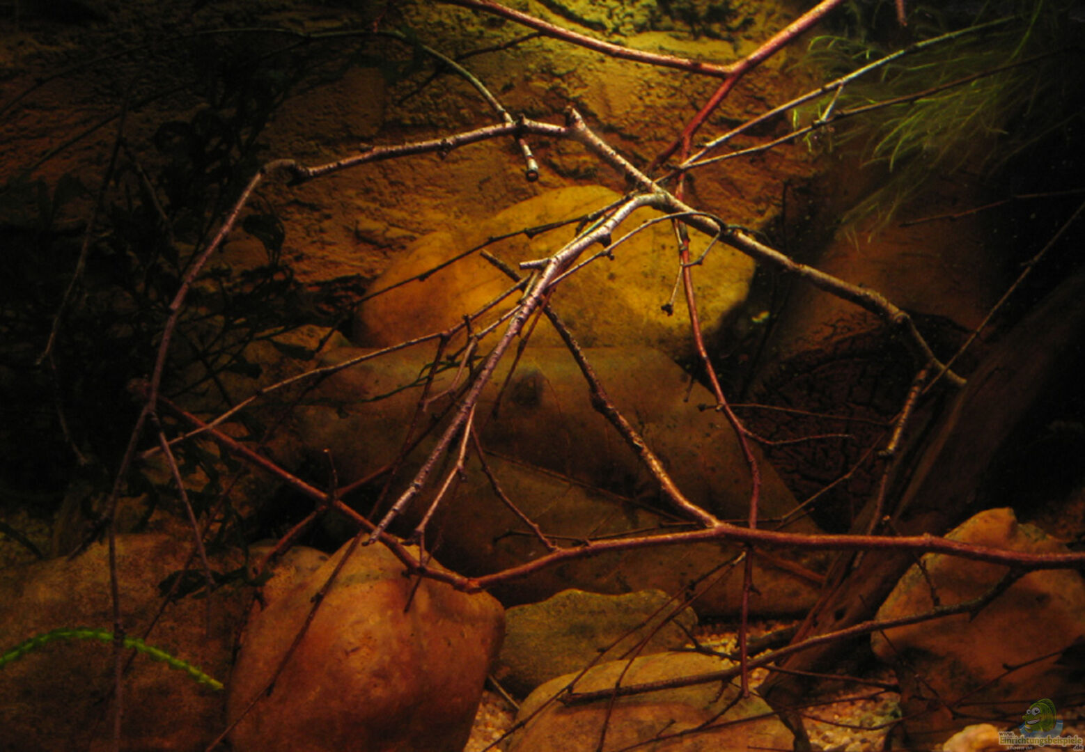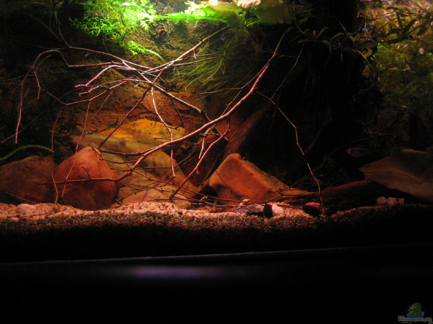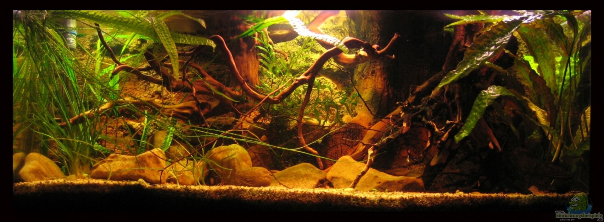 Die Entwicklung eines Beckens in Bezug auf die Einrichtung ist ein langer Prozess. Es gibt nun mal keine "Einrichtungsmaske", die man über sein Becken wirft und alles passt. Diverse Dinge beeinflussen neue Entscheidungen, Gegenstände, Dekos, Pflanzen, Anordnungen. Kommt Zeit, kommt Rat und vorallem Tat. Man wird wahrscheinlich nie 100% zufrieden sein, doch die Jagd nach der Perfektion in der Aquaristik macht doch einen ganz besonderen Reiz aus. Um die Entwicklung zu Veranschaulichen habe ich am 31.03.12 ein Bild der Ersteinrichtung eingefügt.