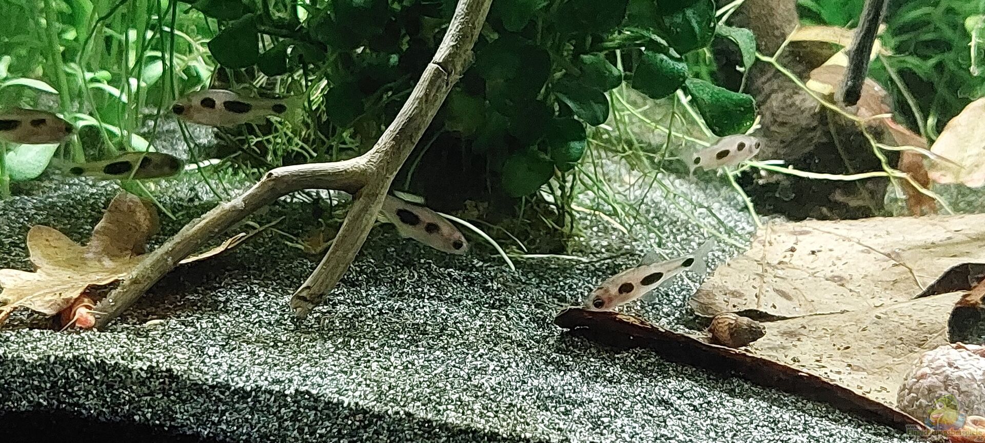 24.10.22 Die Schmetterlingsbarben fressen endlich und scheinen sich an das neue Zuhause gewöhnt zu haben. Und Herr Schmetterling balzt abends was das Zeug hält.