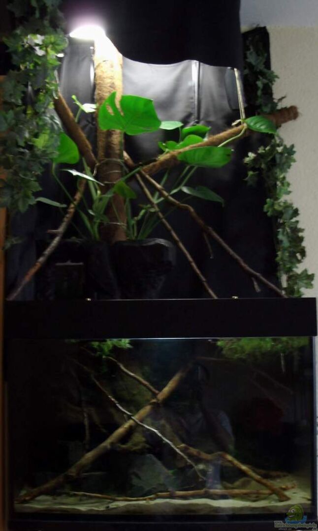 Habe um den Nitrat Wert zu senken und wegen meiner Vergesslichkeit, die Zimmerpflanzen zu gie??en, eine Hydrokultur auf dem Aquarium integriert. Box mit Pflanze in durchlöcherten Blumentopf in Substrat, so das noch kleine Futtertiere Platz finden.