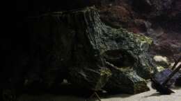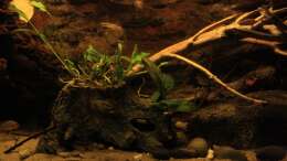 Eine grö??ere künstliche Baumwurzel liegt im Becken an welcher die Anubias Congonensis sowie Anubias lanceolata in grö??erer Zahl zusammen in die gro??e ??ffnung oben gesteckt wurden.Seitlich in die Löcher des Baumstumpfs sind zwei Anubias coffeefolia eingesteckt so das dieser bewachsen aussieht.