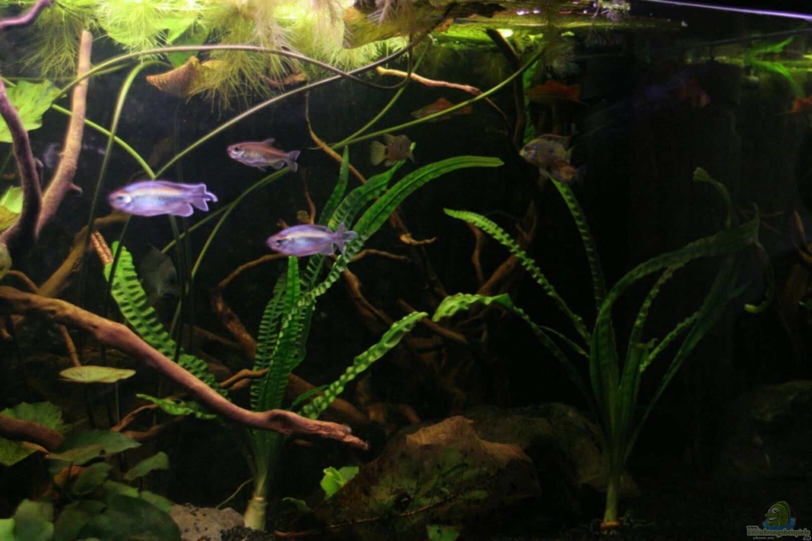 sehr schön gestaltetes Becken , mit einem schönen Besatz , ich hoffe deine Pantodon bekommen genug Futter bei der gierigen Bande von Salmlern.