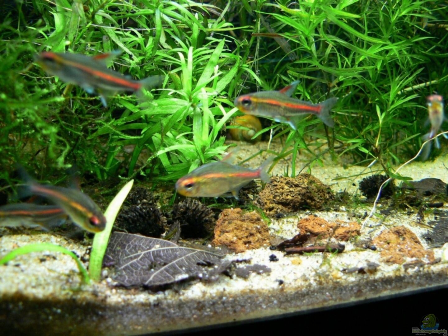 29.9.07: Garnelen sind weg, wahrscheinlich von einer Käferlarve gefressen, die ich vor ein paar Tagen rausangelte, stattdessen schwimmen die Glüchlichtsalmler aus dem 240l Aquarium nun hier.
