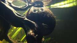 Vom ursprünglichen Plan, die Flösselhechte erneut mit den Purpurprachtbarschen zu vergesellschaften habe ich inzwischen Abstand genommen. Zum einen, weil die Barsche im Moment wieder Jungtiere führen, zum anderen, weil ich befürchte, dass die Raubfische im neuen Habitat die Karten nochmals neu mischen würden, und von der bisherigen "Harmonie" wenig bliebe.