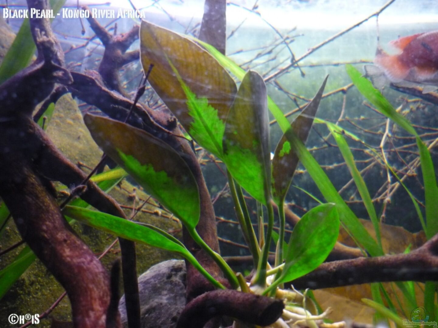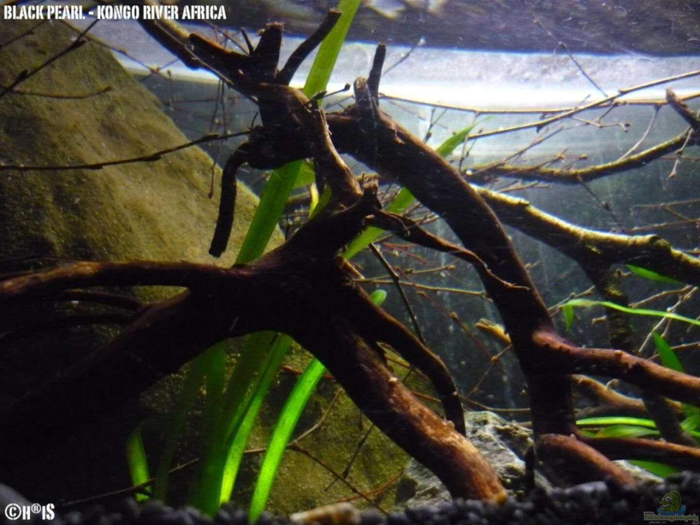 > schwarzer Kies und schwarze Kiesel. Der dunkle Bodengrund wurde wegen der Kongosalmler bewusst gewählt. Die Tiere benötigen einen dunklen Boden um sich richtig wohl zu fühlen.