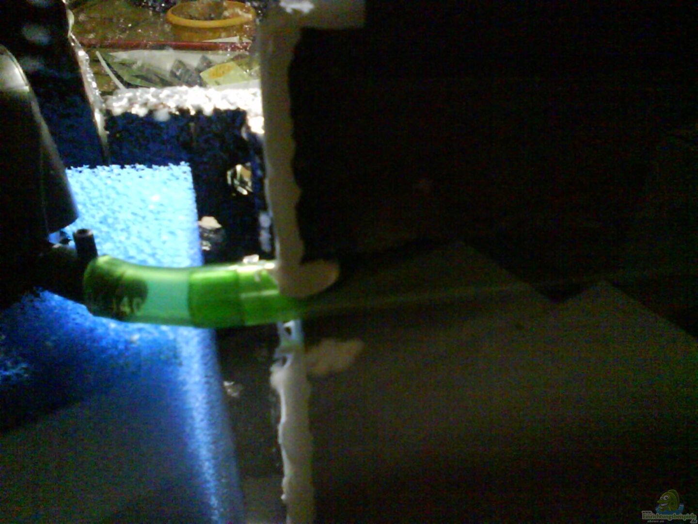 dort ist eine schmale filterkammer wo das wasser von unten nach oben durch 1 liter sinterglas gefördert wird.(ab 04.04.10)auf dem sinterglas befindet sich nun etwas torfgranulat im säckchen um den ph-wert weiter zu drücken