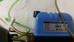 Luftversorgung über eine Aqua Forte V10 - diese versorgt auch noch das ebenfalls vorhandene Qarantäne Becken mit einen HMF und einen weiteren Sprudelstein für die Artemia Produktion