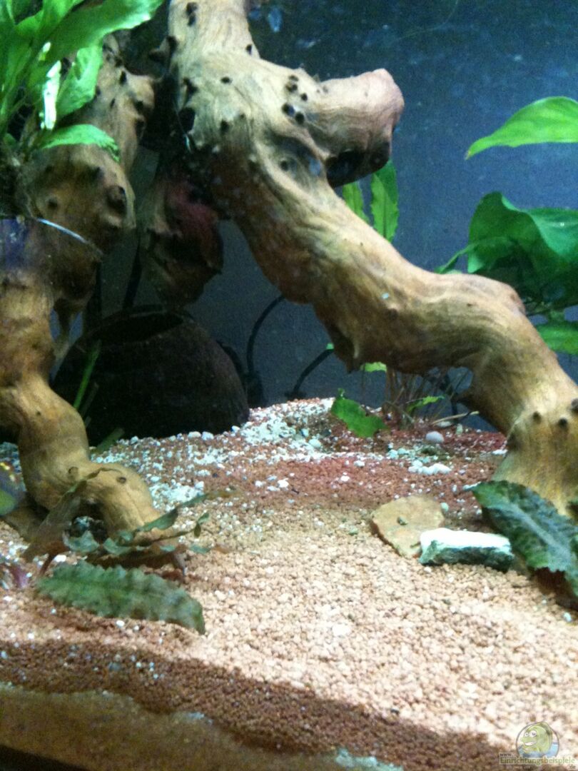 Ich habe alten Aquariumsand von einem aufgelösten Becken und Pflanzen aus meinen anderen Becken verwendet. Filter, Licht und Wurzeln waren schon im Becken.