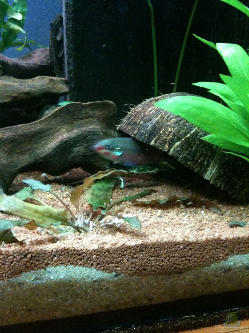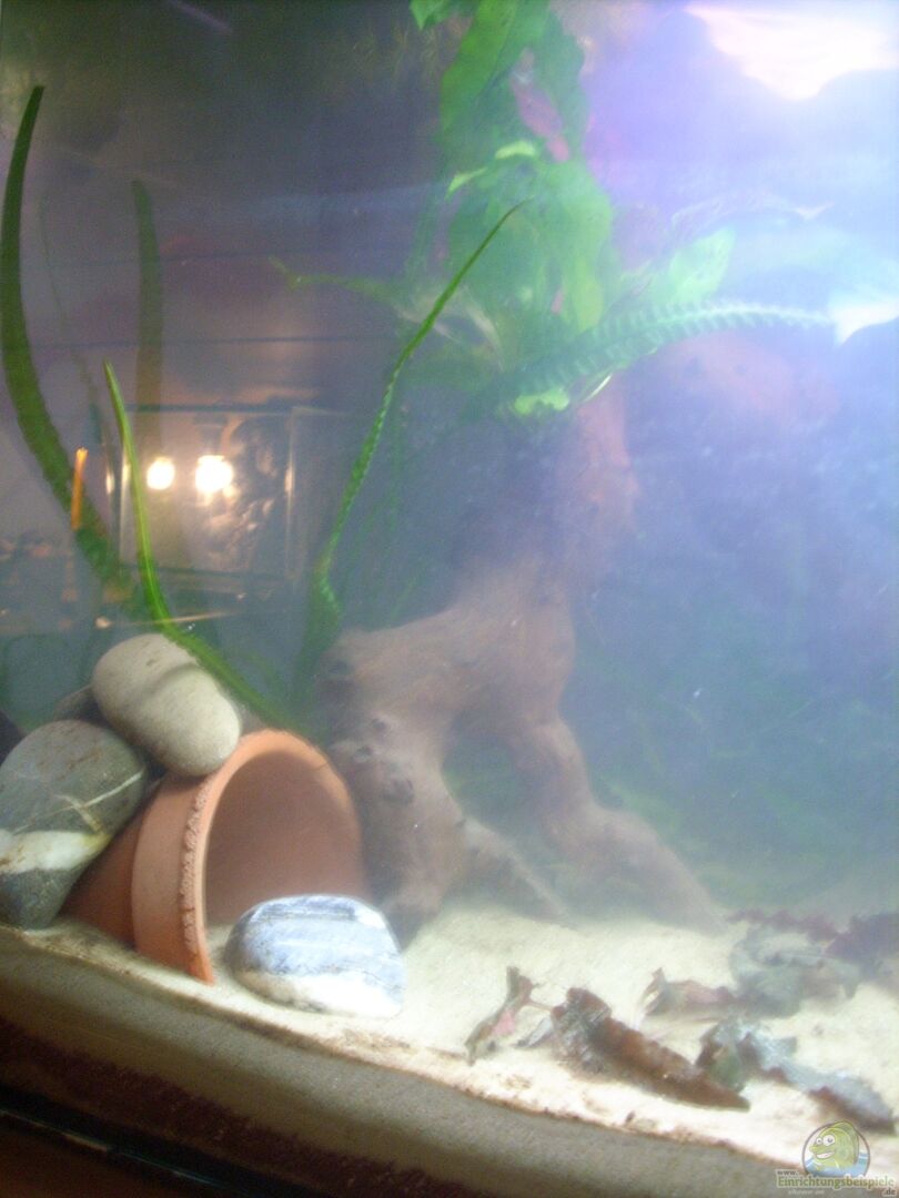 Das Becken ist einen Tag gelaufen und dann habe ich erst mit dem Einrichten begonnen. Da die Wasserwerte dann schon stabil waren, kam der geplante Besatz auch schon rein.
