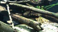 Ich habe versucht, mit diesem Becken einen möglichst naturnahen Bereich des Kongos darzustellen, es soll einen Uferbereich im Pool Malebo zeigen. Im Uferbereich sind neben Steinen noch Pflanzen, Baumstümpfe und Wurzeln vorhanden, welche im Strömungsbereich des Flusses so dann nicht mehr zu finden sind. Um trotzdem noch eine kräftige Strömung im Uferbereich abzubilden, verwende ich einen Tunze-Innenfilter mit einer integrierten Nanostream Strömungspumpe mit 1800 L/min, welche bei der 90er Beckenlänge völlig ausreichend ist. Gerade die Steatocranus casuarius benötigen eine etwas stärkere Strömung für Ihr Wohlbefinden aber auch Phenacogrammus aurantiacus lieben es, oft minutenlag in der Strömung zu stehen. Die Fische und Pflanzen kommen alle aus dem Biotpop des Kongos, lediglich die Stenomelania torulosa kommt von einen ganz anderen Kontinent. Da es schwierig ist, westafrikanische Schnecken zu bekommen, habe ich mich hier für die Langnasenschnecken entschieden. Die Schnecken kümmern sich z.B. um Futter- und Pflanzenreste am Boden und haben so einen gro??en Anteil am Erhalt des biologischen Gleichgewichts im Becken.