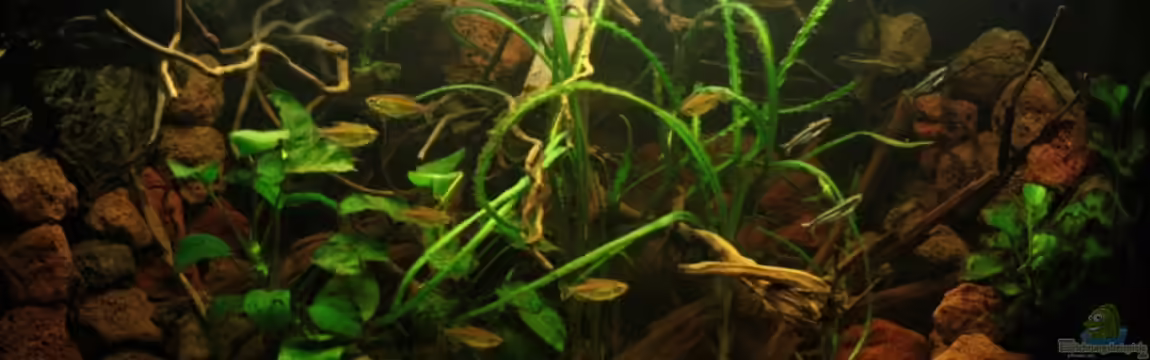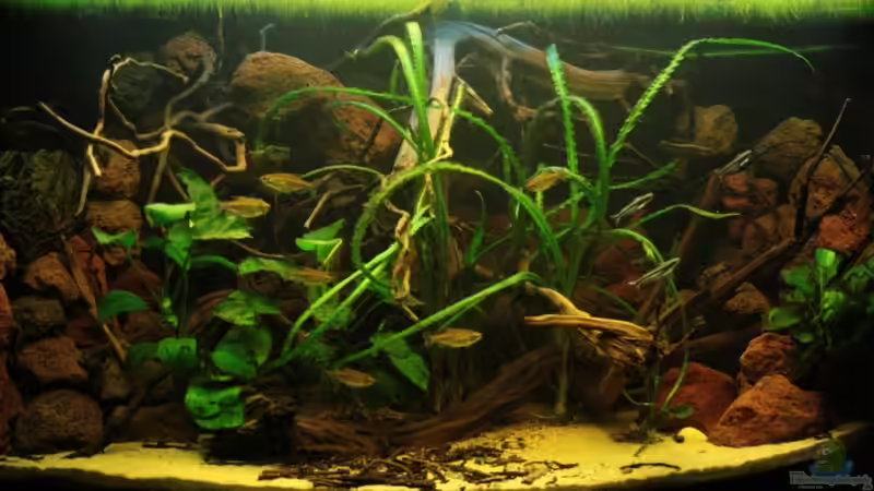 Sehr wenige Pflanzen wie Anubias und Crinum Natans runden das Bild ab.Schwerpunkt sind diverse Wurzeln, die mein Becken wie ein Waldbach aussehen lässt und das typische Muster verleiht.