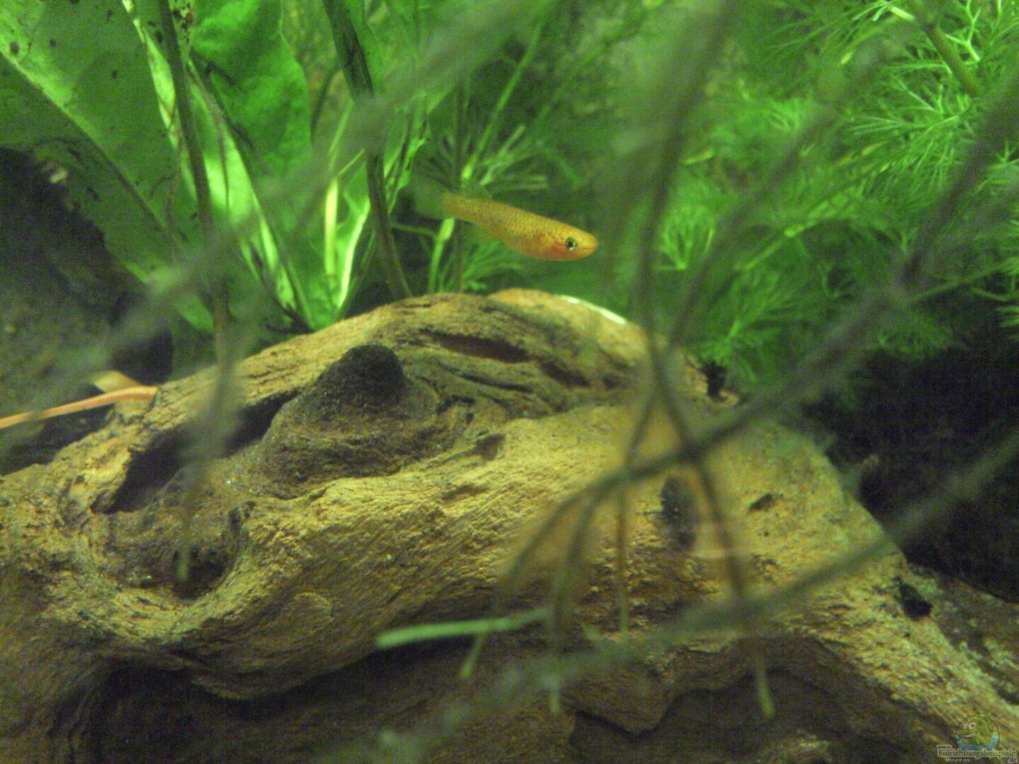 08.05.2014 : Ich habe ein paar Muschelblumen und Froschbiss eingebracht. Mit den heute eingesetzten 1/2 Aphyosemion australe "Gold" ist der Besatz komplett.